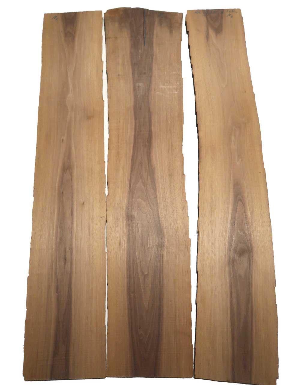 Hierbei handelt es sich um rustikales Nussbaum Holz - Walnnussholz. Mit seiner kräftigen grau- bis schokoladenbraunen Farbe und seiner deutlich gestreiften bzw. gefladerten Struktur ist der amerikanische Nussbaum ein sehr begehrtes und als hochwertig betrachtetes Möbelholz.Die grauen/dunklen Flecken sind nur vom Lagern/beim Trocknen enstanden und nur oberflächlich, lassen sich abschleifen! Viele weitere Maße sind auf Anfrage vorhanden.