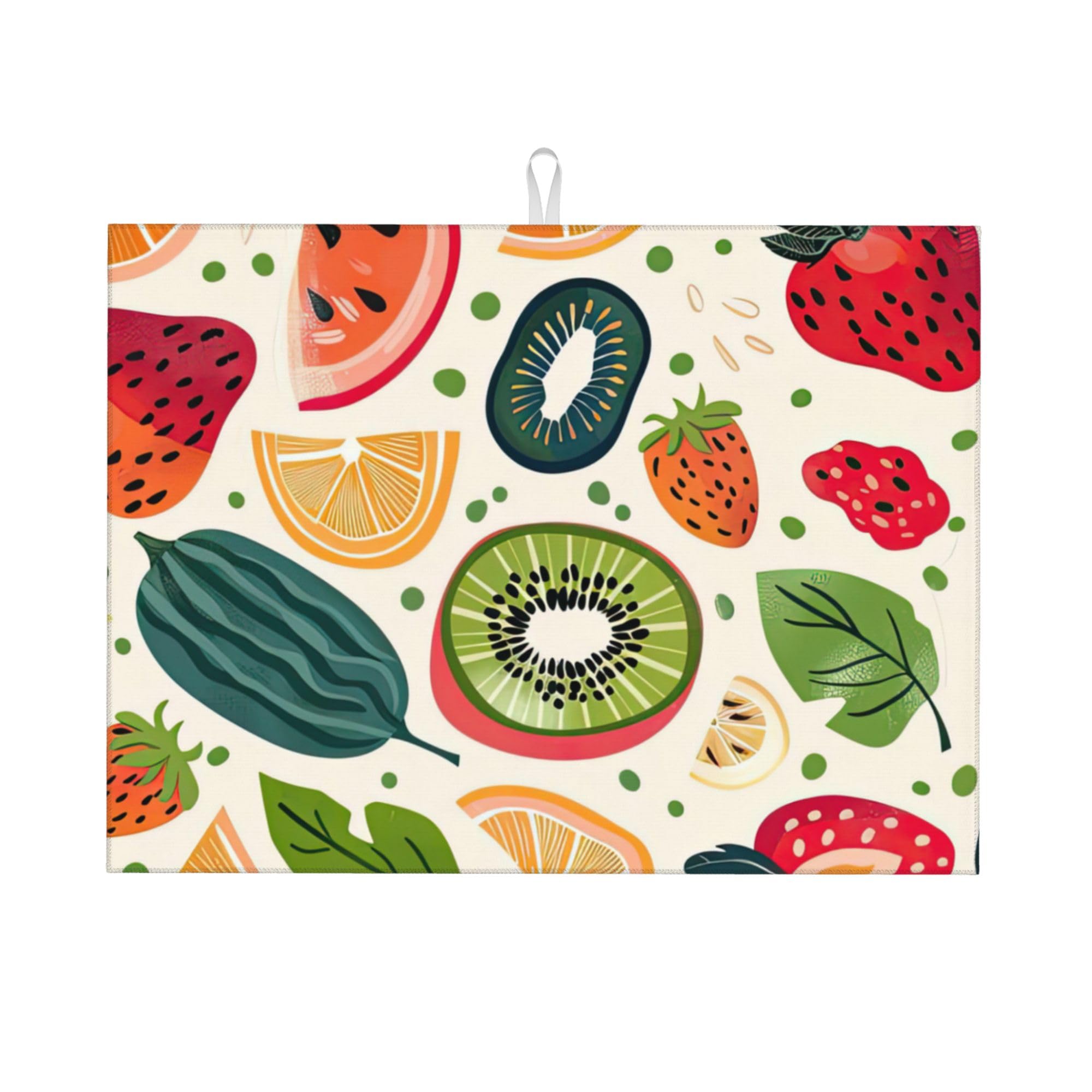 Fruits Painting Dish Drying Mats for Kitchen Counter, Absorbent Reversible Microfiber Dish Drying Pad, Multi-Use Large Drying Mat Coffee Bar Accessories 18"x24"