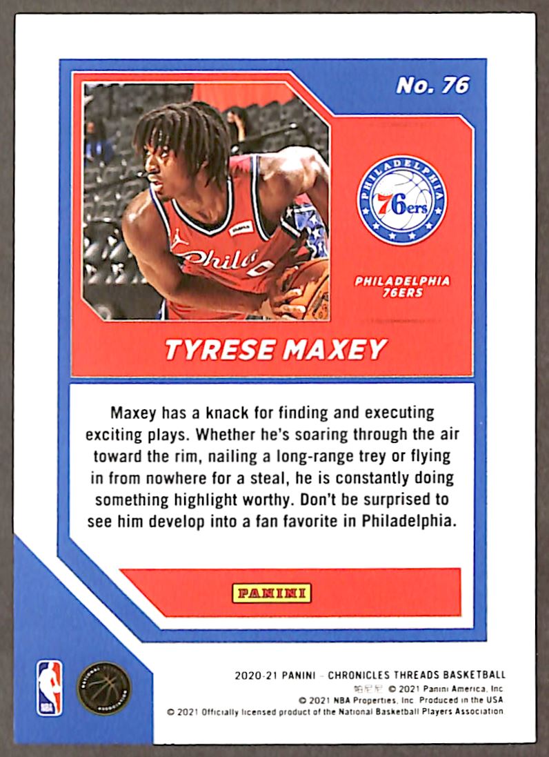 | 2020-21 Panini Chronicles Threads #76 Tyrese Maxey Rookie Philadelphia 76ers |
