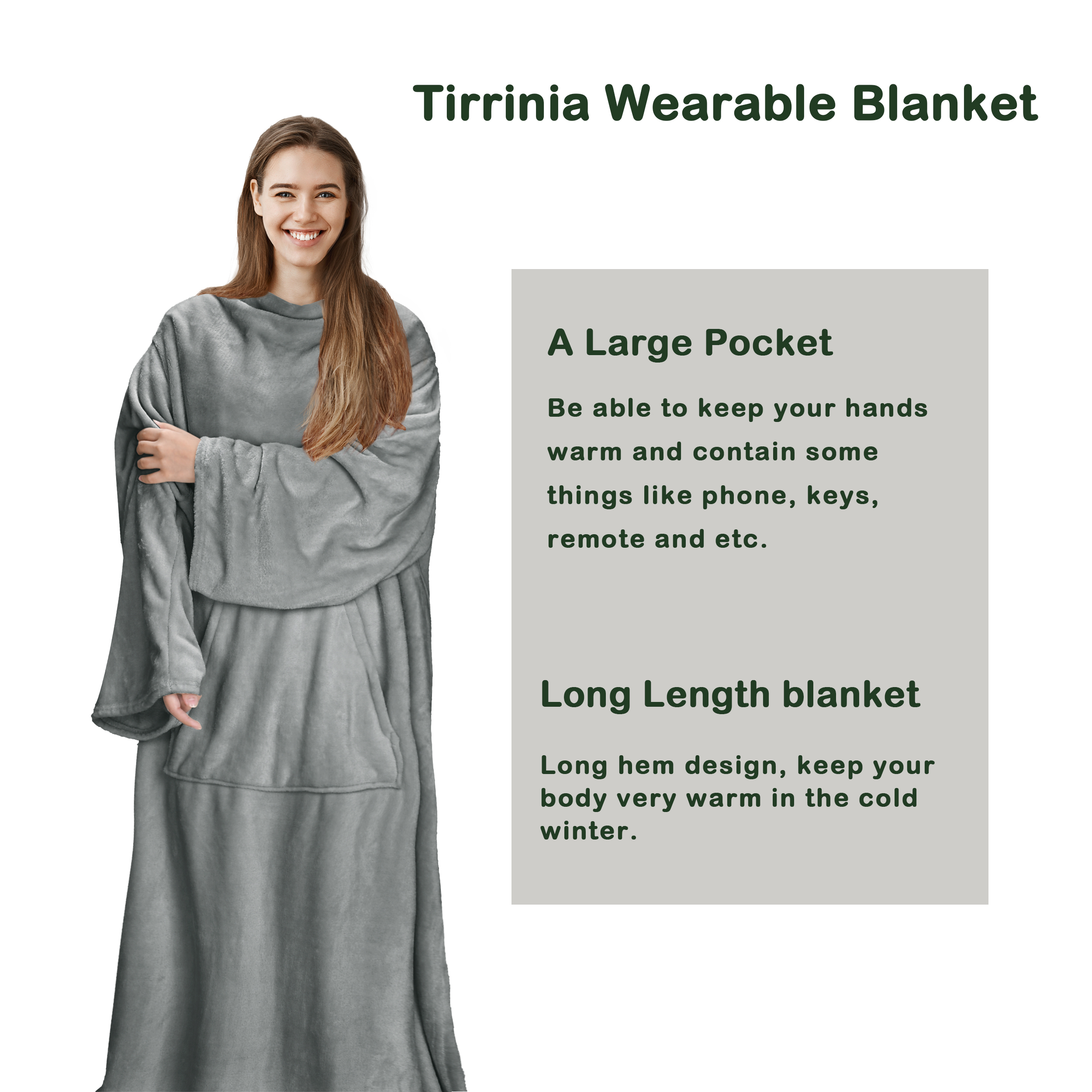 Care Instruction: Wash separately in cold water, tumble dry low; Our blanket with sleeves will gets softer with each wash!