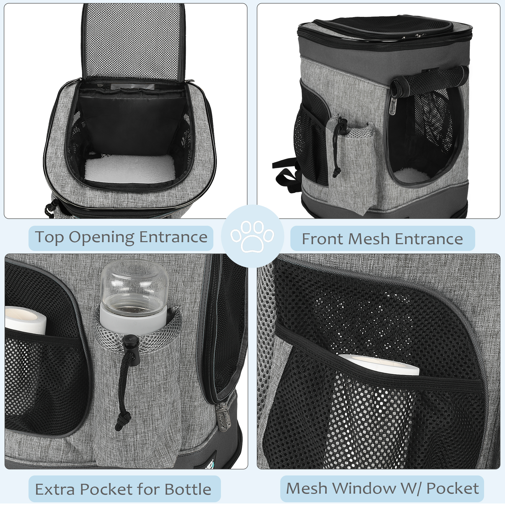 ● KEEP YOUR PETS SAFETY - Two entrances on the front & on the top which can meet pets standing & laying needs at the same time. You also can attach your pets to inside lock leash keep secure while put their head out on the top.Equipped with a firmly reinforced structure to prevent itself from collapsing on your pet while traveling.