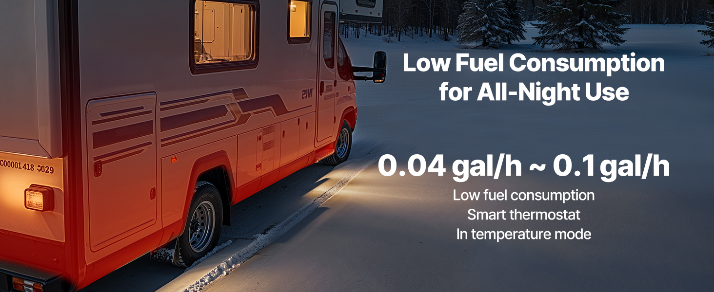 - Effizientes Aufheizen: Die 8-kW-Dieselheizung sorgt innerhalb von nur 5 Minuten für eine Temperatur von bis zu 210 °F (etwa 99 °C) in Räumen mit einer Fläche von 108 bis 161 Fuß². Innerhalb von 10 Minuten wird ein angenehmes Raumklima im Fahrzeug geschaffen. Die Heizung ist für eine Betriebsspannung von 12 V/24 V ausgelegt.