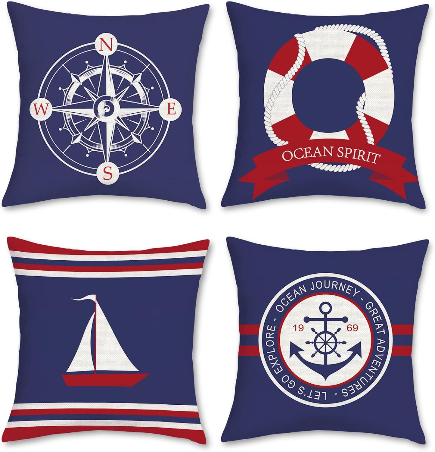 - Two Sides Design: The nautical pillow covers front pattern is as shown, the back of the pillowcases is blue, red, red and blue stripes, perfect to decorate your house well, living room, sofa, couch, chair, car, suitable for indoors&outdoors decoration.