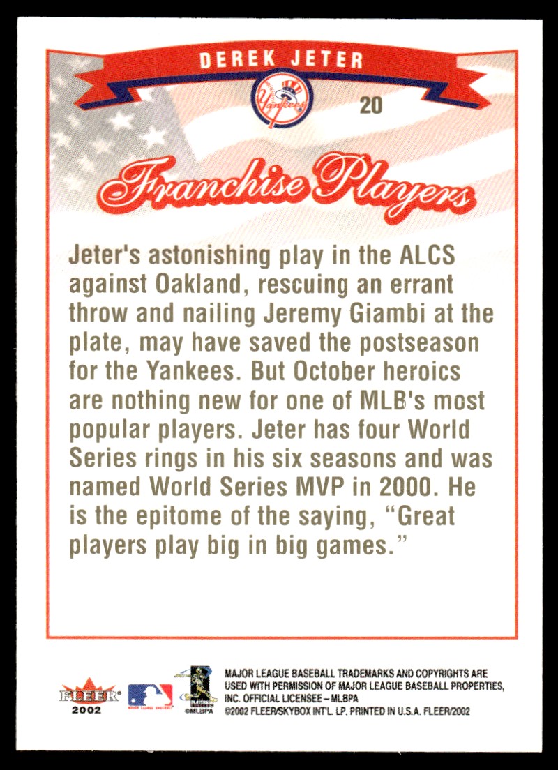 | 2002 Fleer #20 Derek Jeter New York Yankees |