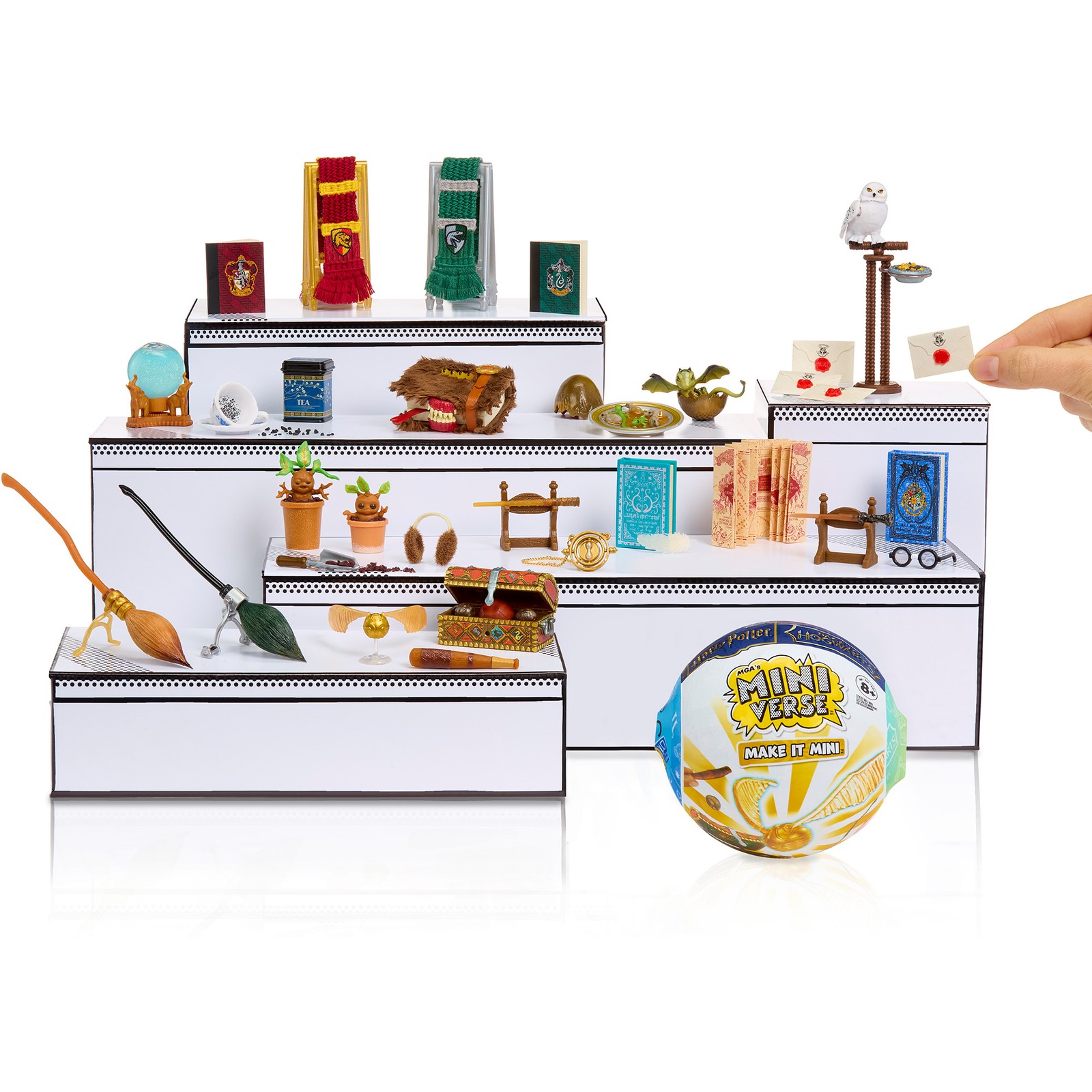 Bastele deine Lieblingsgegenstände aus den Harry Potter-Filmen mit MGAs Miniverse Make It Mini Back to Hogwarts - tolle Repliken zum Thema Harry Potter zum Basteln, Aufstellen, Präsentieren und Sammeln! Jede Kugel enthält realistische Mini-Utensilien und Zubehör - vom Quidditch-Set über den Nimbus 2000 bis hin zum Gryffindor-Schal. Jede Packung enthält eine Überraschung, so dass du erst beim Auspacken weißt, welche Mini-Replik es ist. Der Ball, in dem die Miniatur geliefert wird, verwandelt sich in ein kleines Klassenzimmer - als Display für die Miniaturen. Hinzu kommen einzigartige Accessoires und Zubehör. Von Harrys Brille über ein Mini-Slytherin-Notizbuch bis hin zu Blumenerde für die Baby-Alraunen - es gibt so viel zu entdecken. Sammle sie alle - es gibt 12 verschiedene Ausführungen.