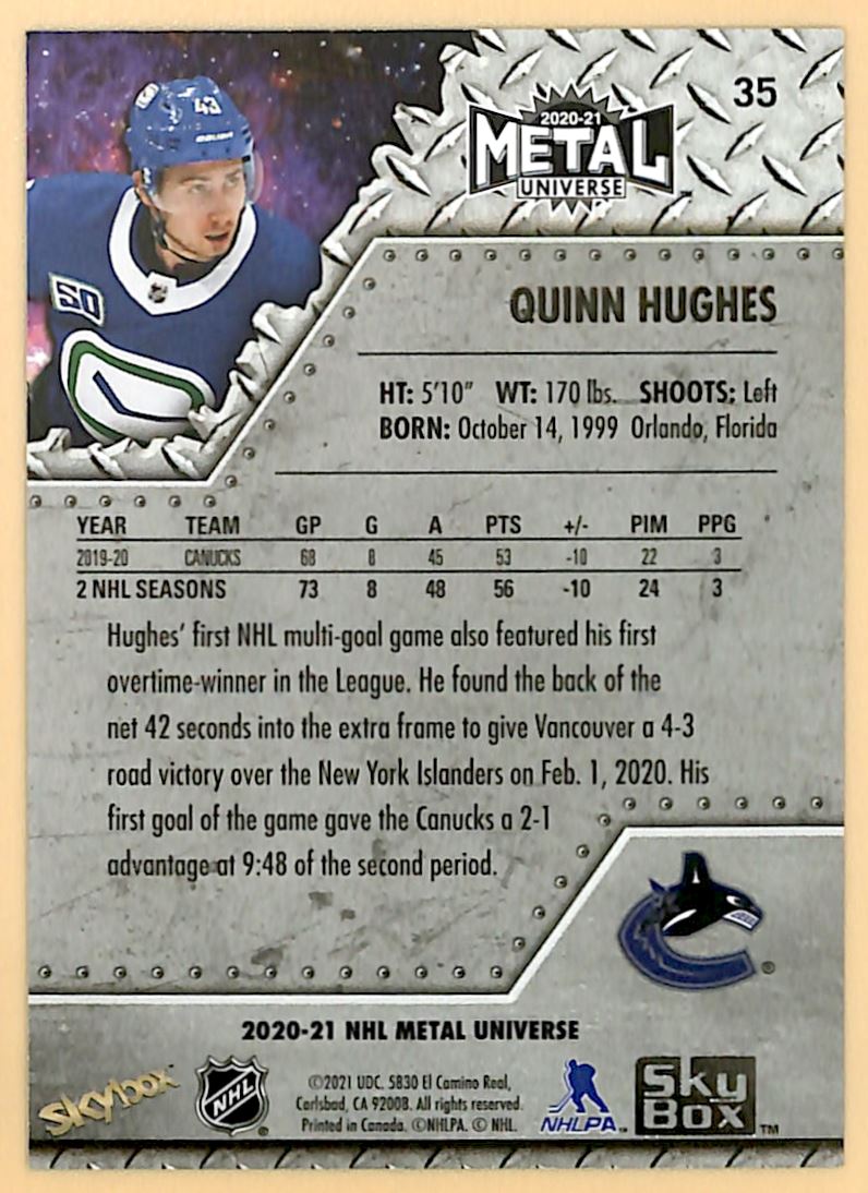 | 2020-21 Skybox Metal Universe #35 Quinn Hughes Vancouver Canucks |