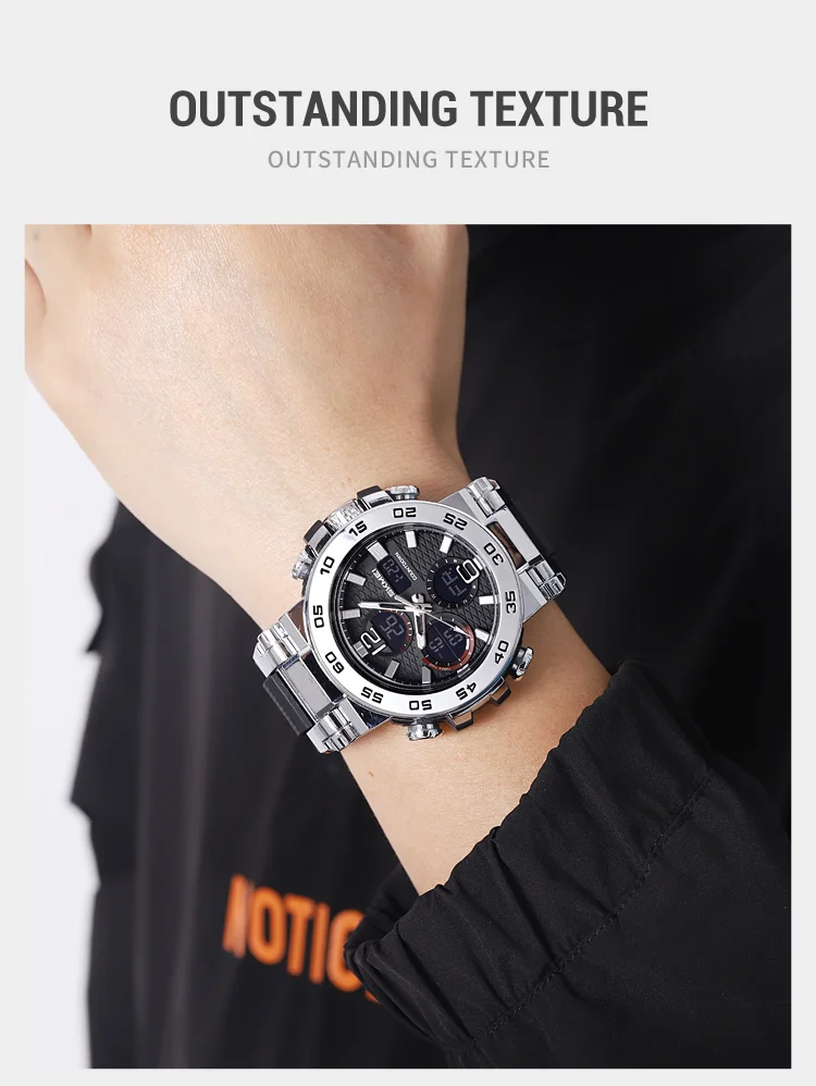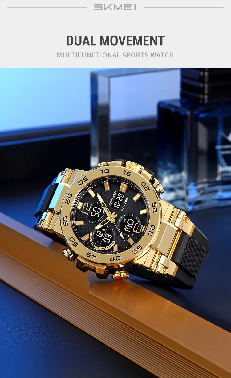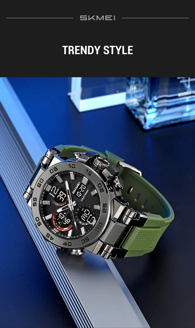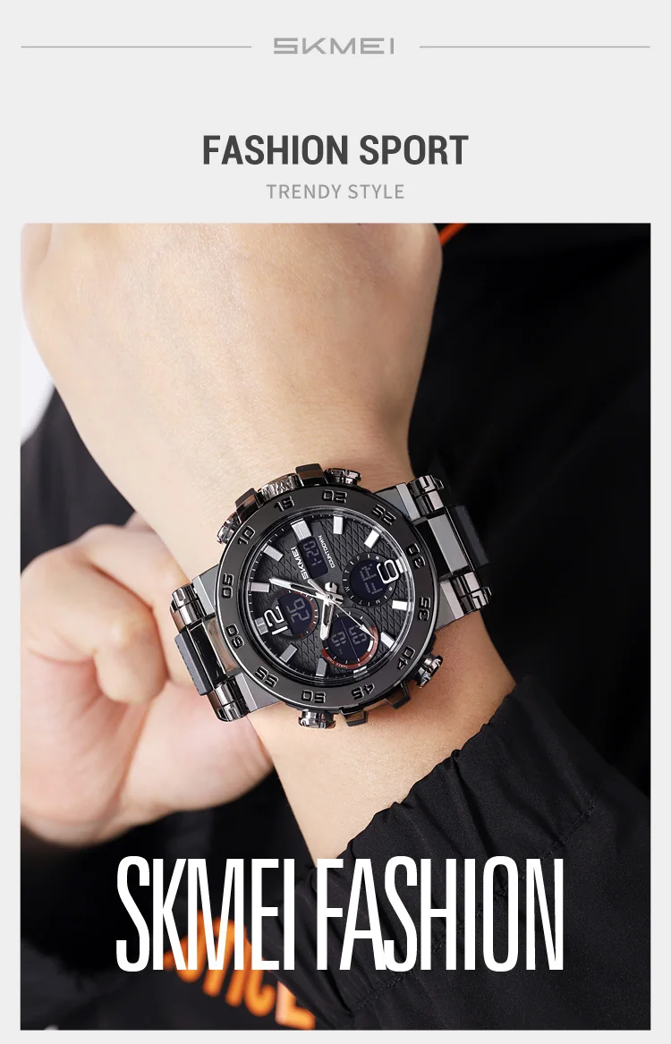 SKMEI Sport Waterproof Dual Digital Display LED night light Watches with Calendar Analog timing Alarm Clock West Coast 2499 Model: 2499 Movement: Electronic Movement Battery model: CR2025/SR626SW Waterproof: 50 meters Net weight of watch: 66.2g Mirror: resin Case: ABS Strap: TPU Buckle: Stainless steel Bottom cover: stainless steel Dial width: 54.7mm Dial height: 59.5mm Dial thickness: 18mm Strap width: 30.2mm Watch total length: 280mm 3. Time, stopwatch timing, date Alarm clock, week, LED night light Hourly clock, 12/24-hour clock count down.