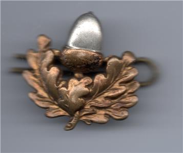 Description : Two Oak leaves with an acorn above them. The acorn is silver gilded.