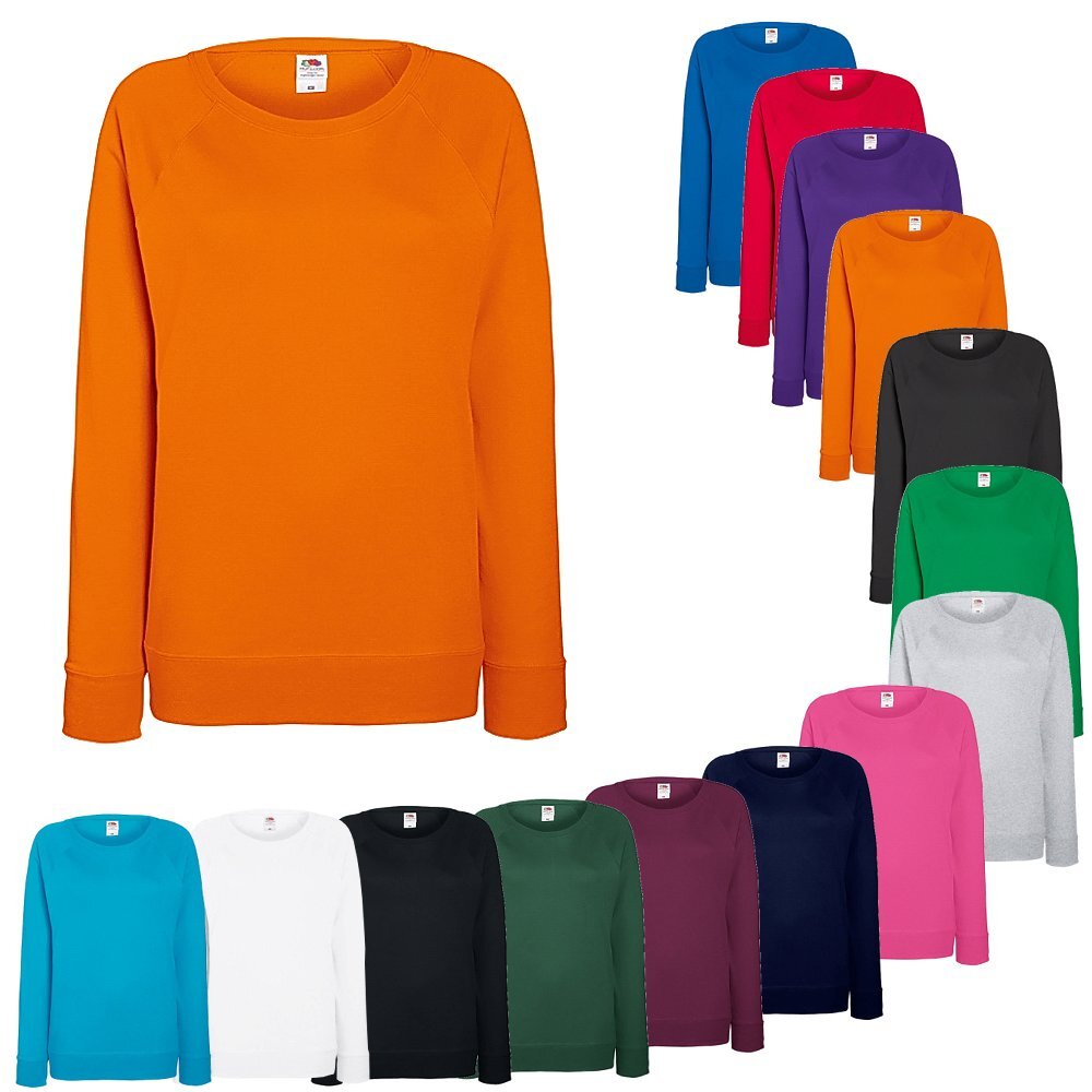 Sofort Kauf Fruit of the Loom Lady-Fit Lightweight Damen Raglan Sweat Shirt Arbeitspullover