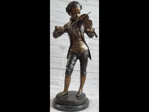 Indulge in the timeless beauty and elegance of this Wolfgang Amadeus Mozart Classical Composer Bronze Metal Statue Sculpture. Expertly crafted and signed by the artist, each piece is a numbered work of art. Bring a touch of sophistication to your home with this exquisite statue, celebrating the legacy of a musical genius.This sculpture is made from hot cast bronze, using the ancient lost wax casting method and mounted on a marble base.