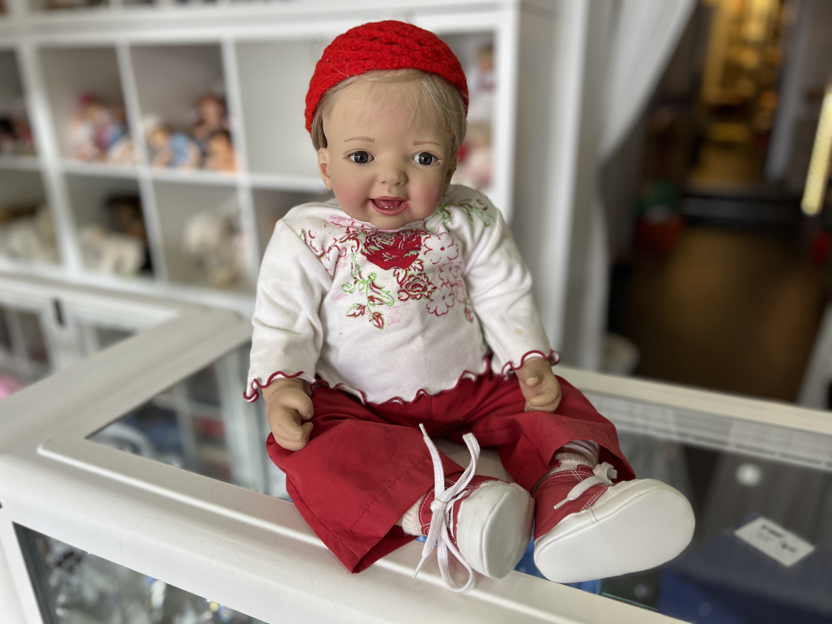 Künstlerpuppe Doris Stannat Vinyl Puppe 58 cm. Top Zustand