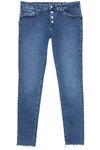 Produktbeschreibung: klassischer Five-Pocket-Style ausgefranste Beinenden Super Skinny Fit schmale Röhrenform normale Leibhöhe Stretch Denim sichtbare Knopfleiste Maschinenwäsche