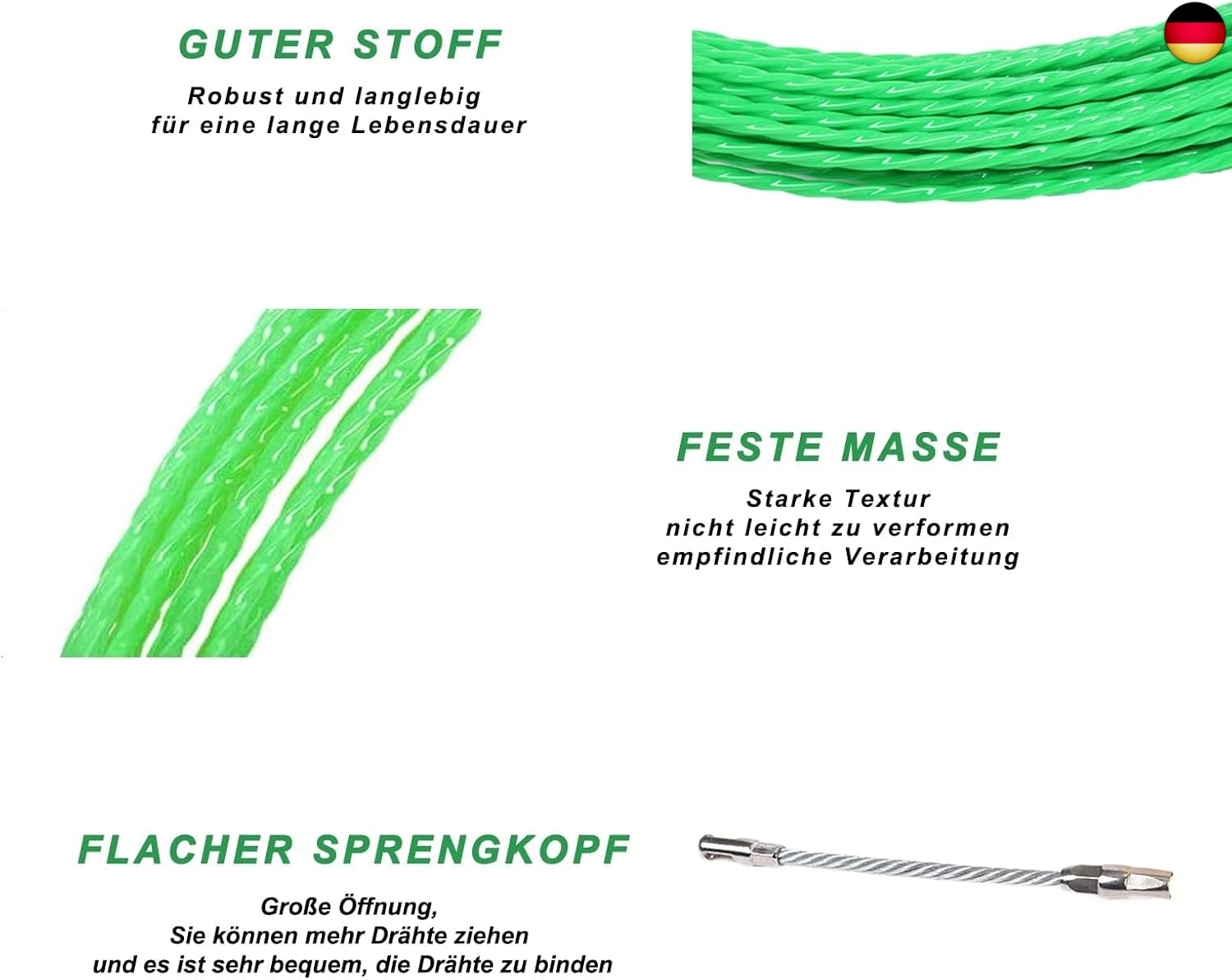 1.Einziehspirale 30 m Polyester Einziehdraht mit Führungsfeder Einziehband φ 4 mm, Kabeleinzug Einziehhilfen in ideales Einzugsband zur Kabelverlegung Leerrohre.
