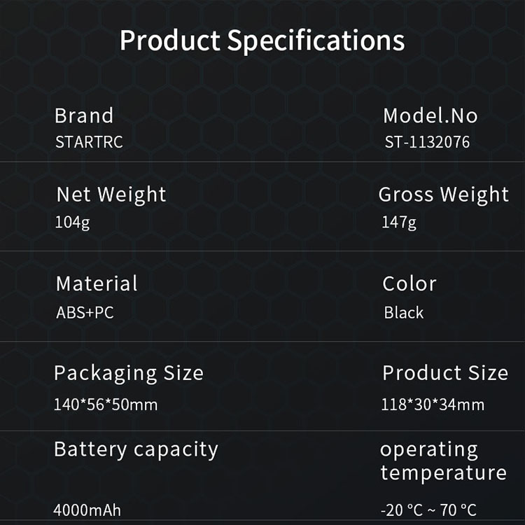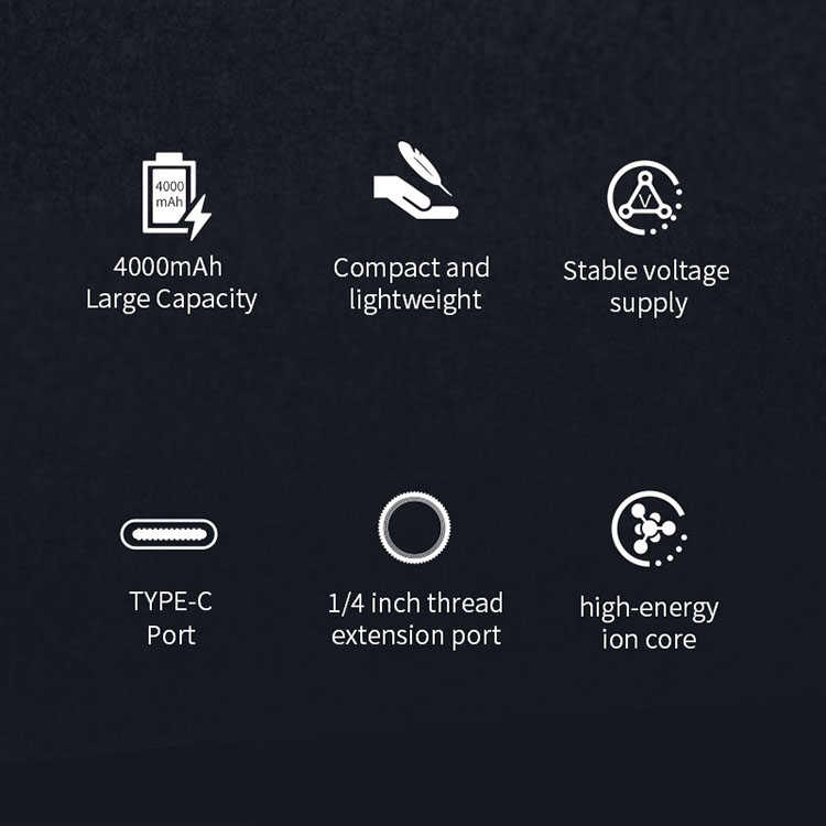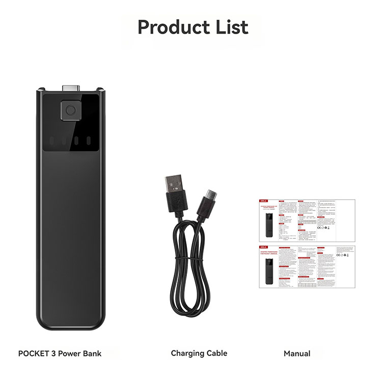 l The device is powered by a high energy density lithium-ion cell with a huge built-in capacity of 4000mAh, which provides a stable power supply for the POCKET 3