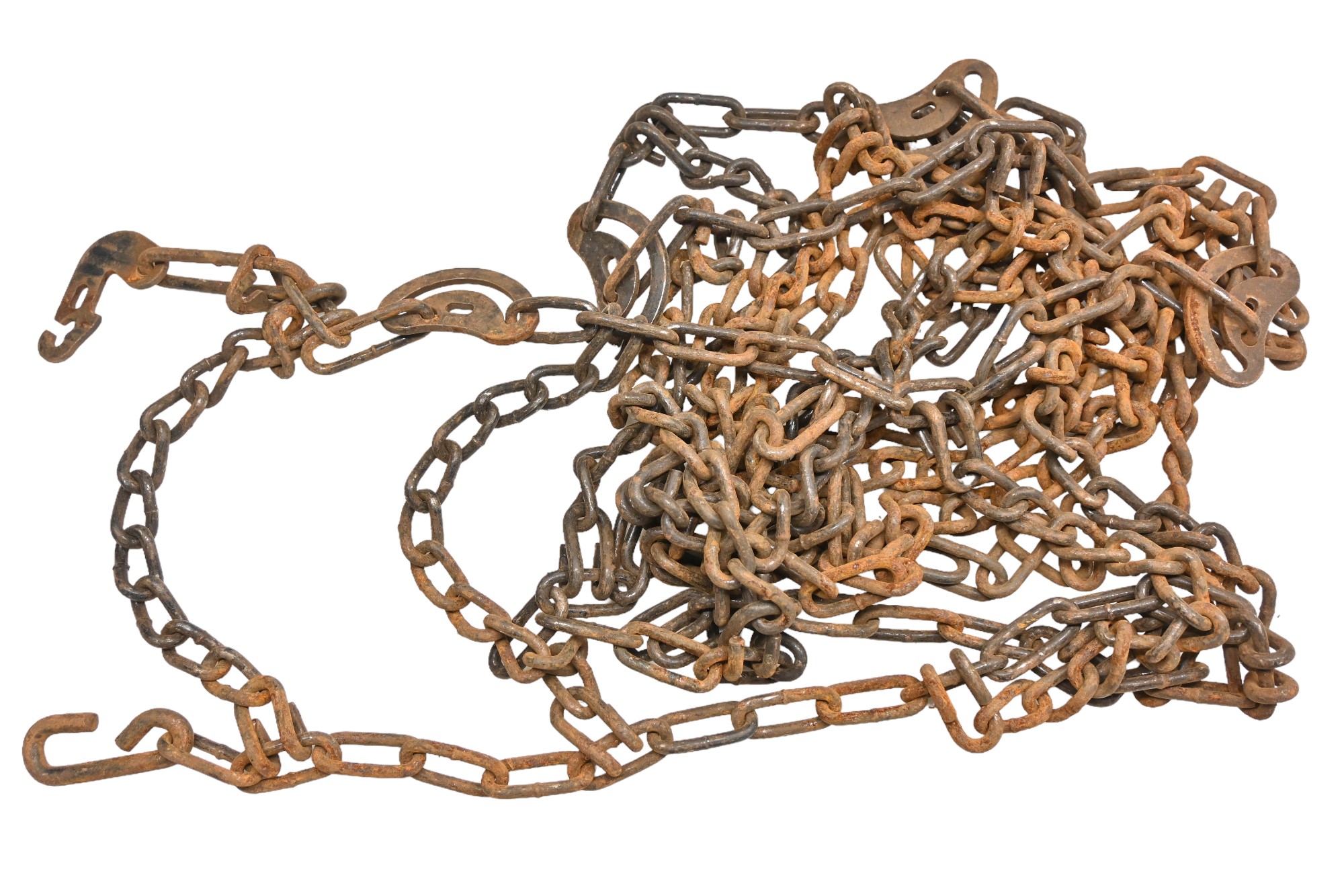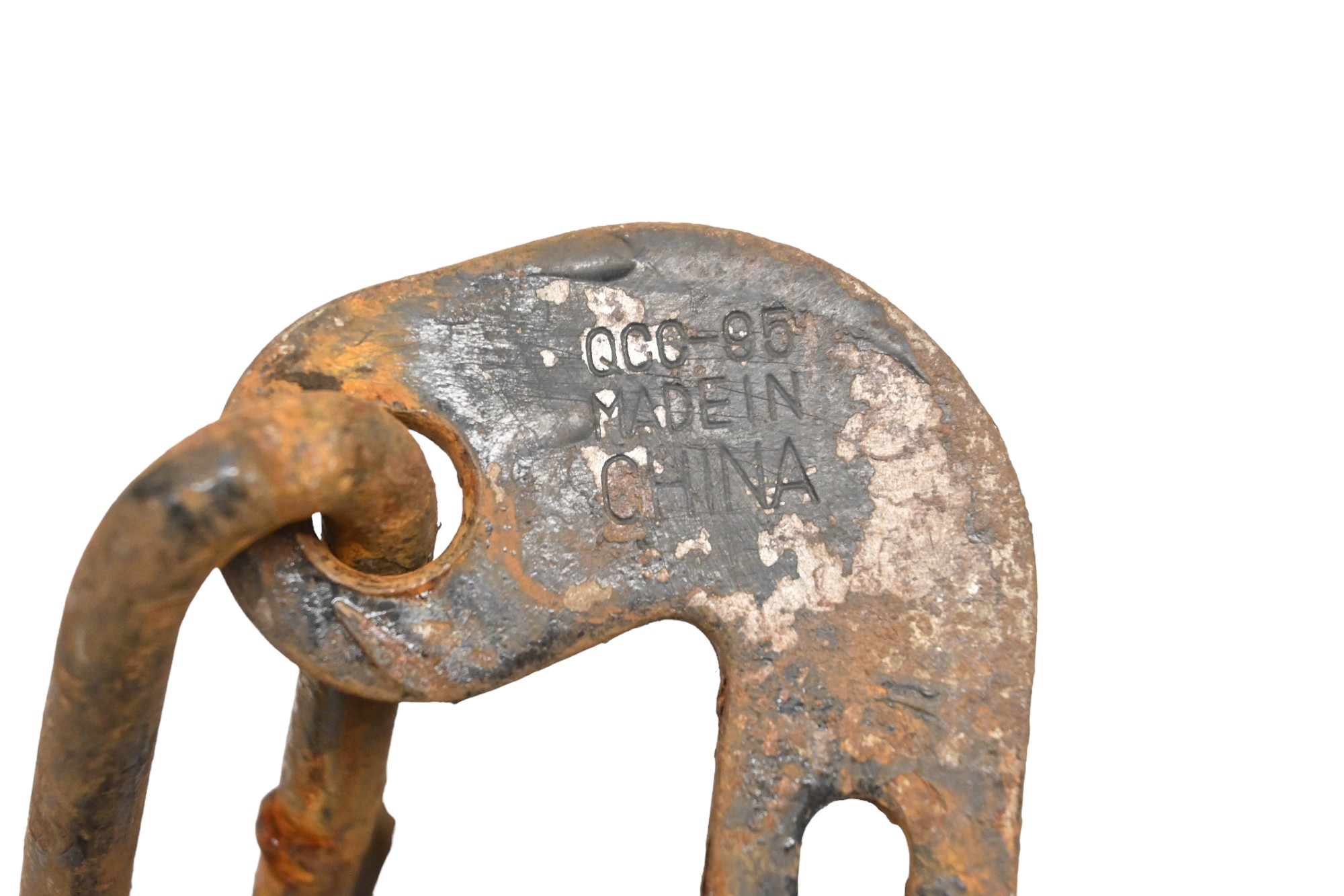 Tire Chain is used and in fair condition, not in original packaging. Shows signs of wear from use, rust present.