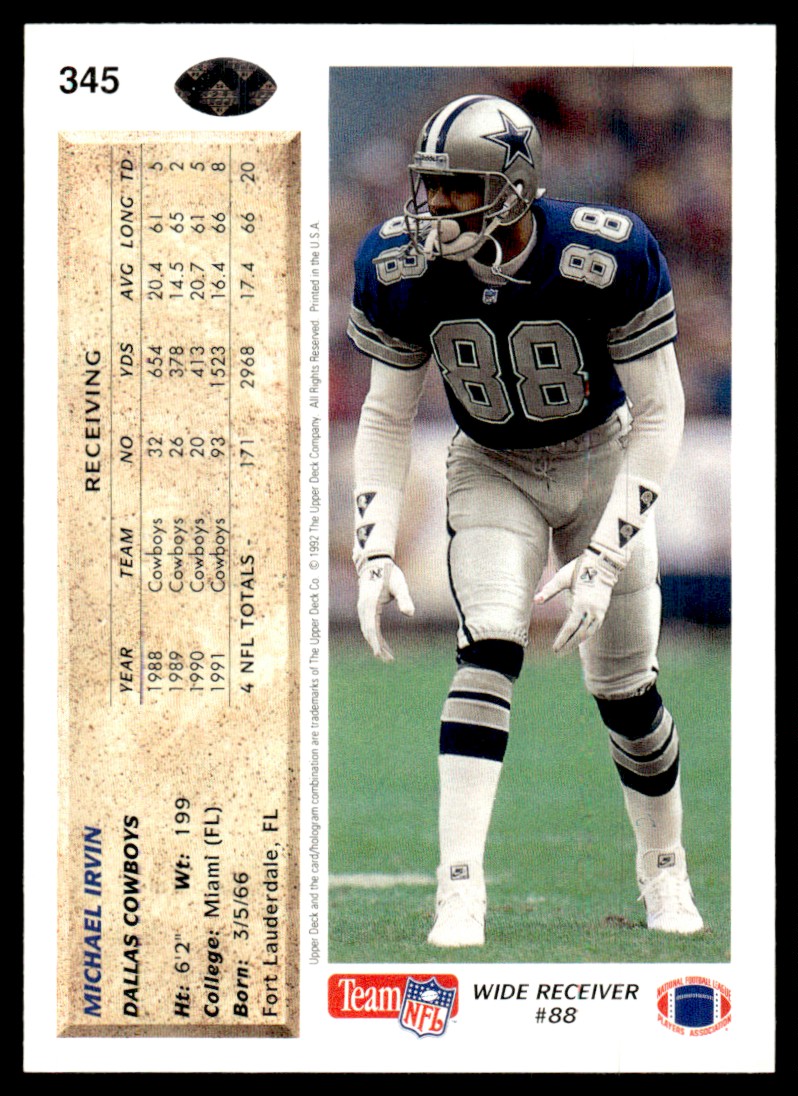 1992 Upper Deck Michael Irvin Dallas Cowboys #345