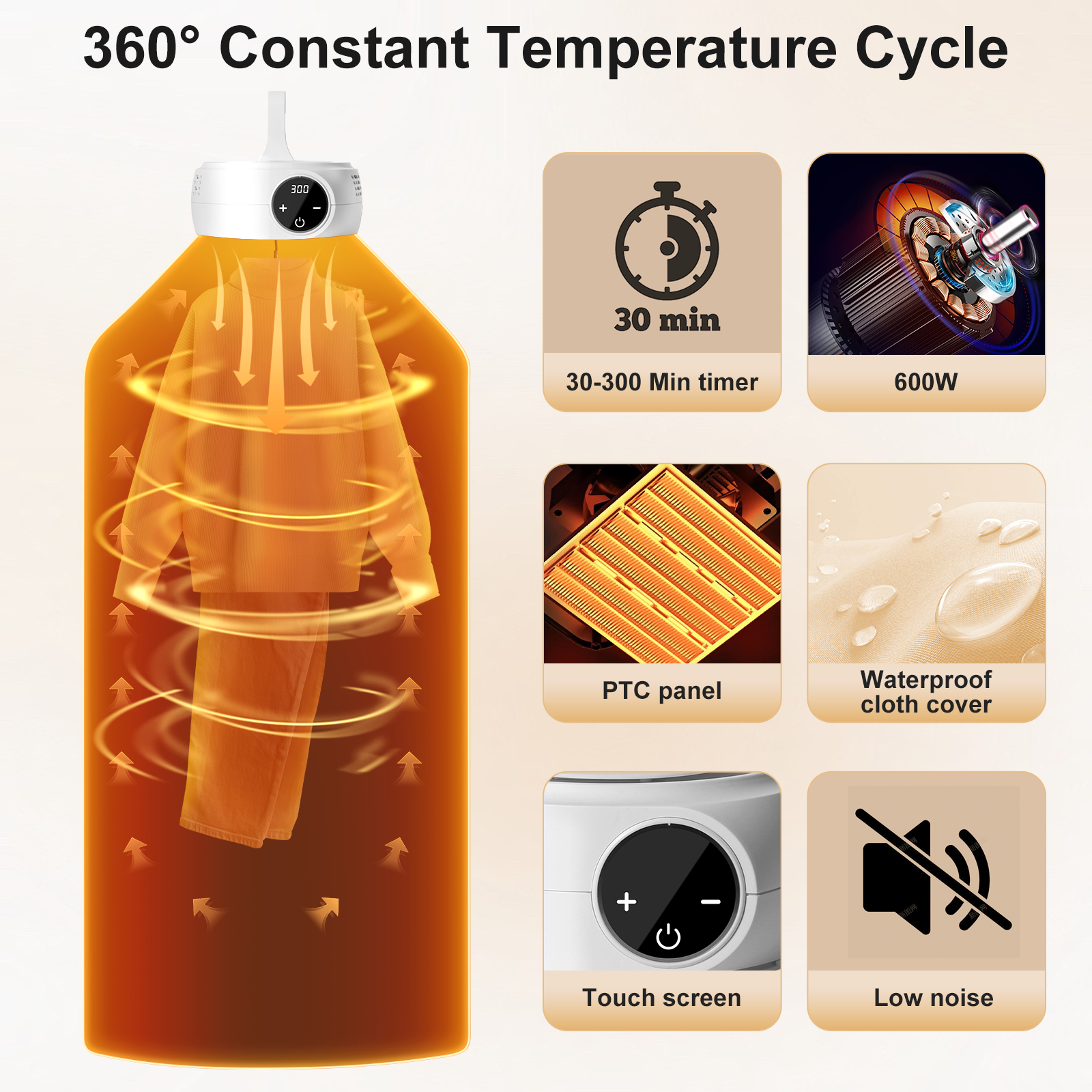 Experience thorough drying with 360° hot air circulation for even and consistent results. This powerful system quickly dries multiple garments at once with no dead angles.