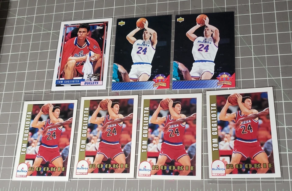 ROOKIE's⚡Tom GUGLIOTTA Bullets # 24⭐1992 Upper Deck-Topps-NBA Hoops SkyBox⭐7 Sleeved Cards
