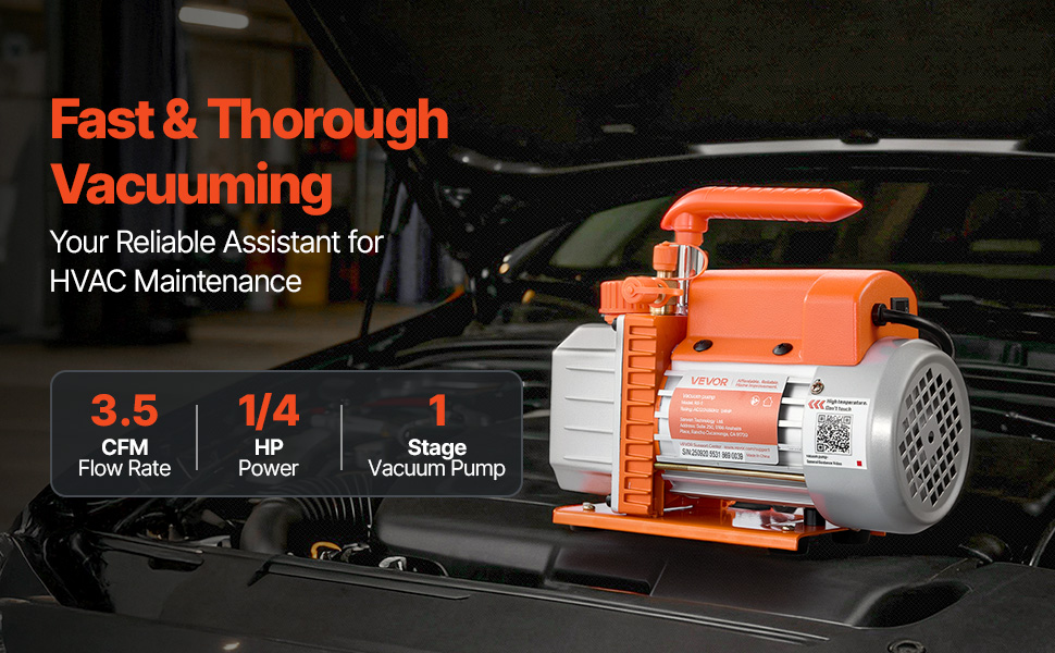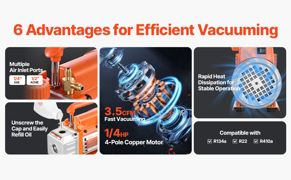 Delivering 3.5 CFM airflow and a 5 Pa ultimate vacuum with a 1/4 HP motor, this vacuum pump gets the job done quickly. Its durable cooling design, visible oil window, and multiple air inlet port options make it ideal for HVAC servicing, resin degassing, and wood stabilization.