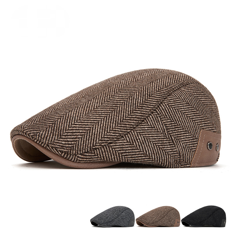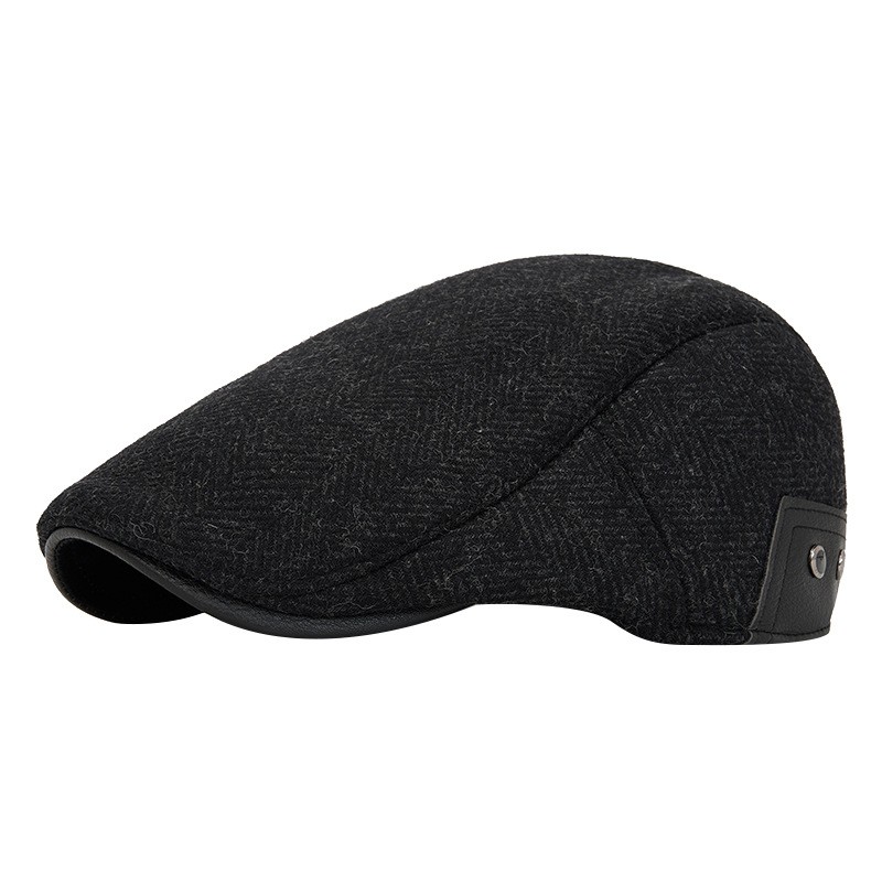 Men Wool Herringbone Duckbill Newsboy Flat Hat Gatsby Driver Painter Winter Cap