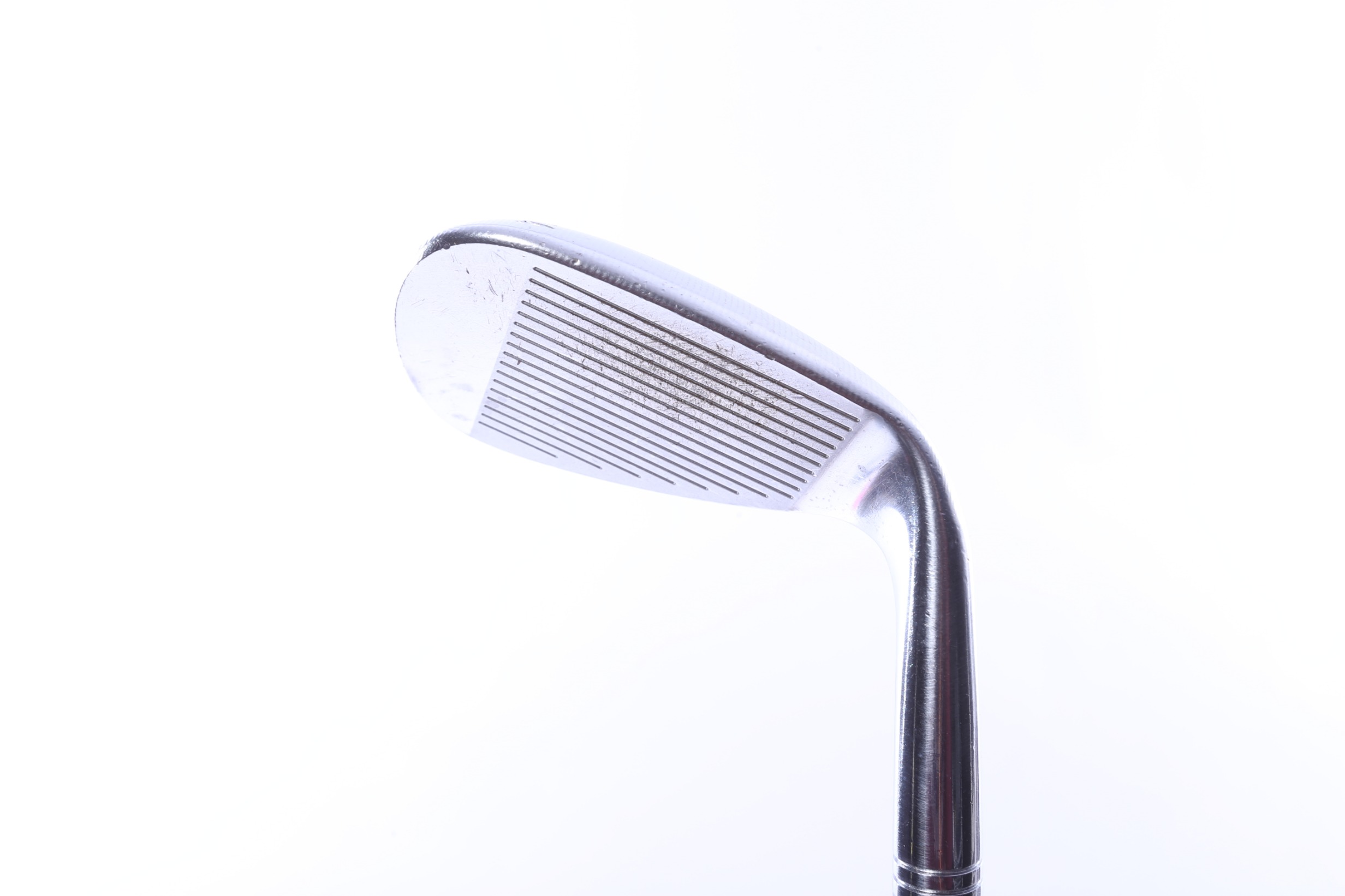 This wedge is in average condition for its age. It has been well played by its former owner, and shows cosmetic wear including scratches, nicks, and paint chips on the face, sole, and crown.