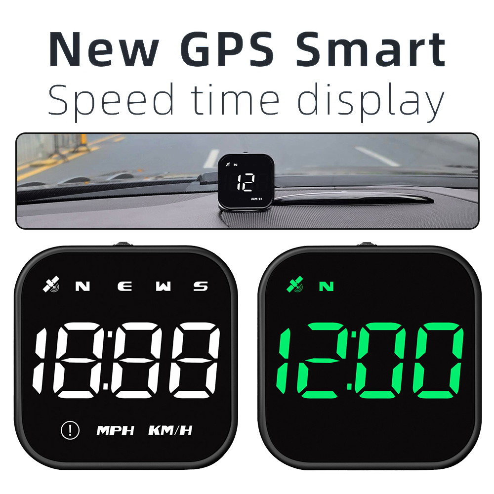 Digital Car HUD GPS Speedometer Head Up Display MPH KMH Compass Overspeed Alarm