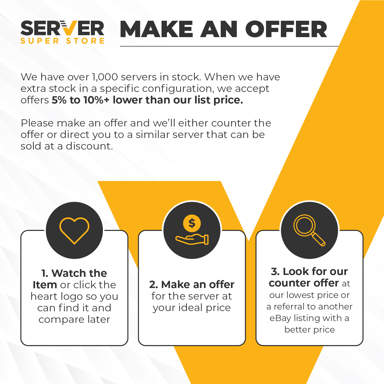 At ServerSuperStore, our goal is to meet consumer needs for less expensive, refurbished servers. On one hand, we see a demand for affordable servers; other businesses need to handle server inventories they won’t be using. ServerSuperStore is the solution to both challenges, as an asset management company that carries out the entire remarketing process.