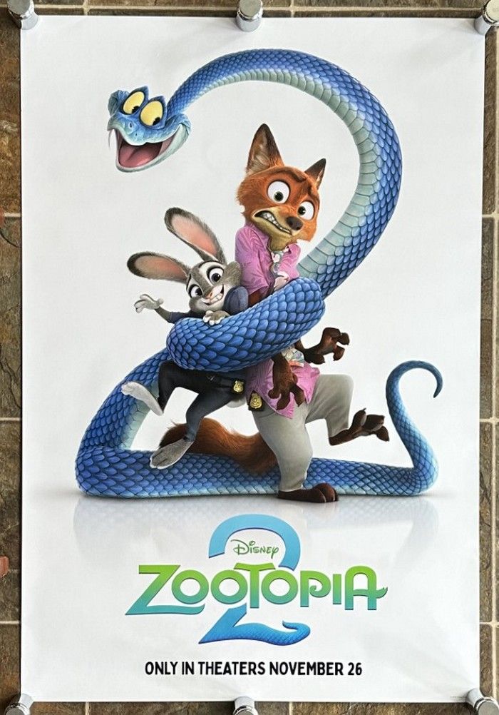 "ZOOTOPIA 2" - 2025 - Original 2-Sided 27X40 Movie Poster - Advance Style "Brave rabbit cop Judy Hopps and her friend, the fox Nick Wilde, team up again to crack a new case, the most perilous and intricate of their careers." This is an original 1-Sheet movie poster from the 2025 Disney animated sequel film - "ZOOTOPIA 2" - starring the voices of Jason Bateman, Quinta Brunson, Idris Elba, Fortune Feimster, Ginnifer Goodwin, Maurice LaMarche, Ke Huy Quan, Jean Reno, Shakira and Jenny Slate. Directed by Jared Bush and Byron Howard. This poster is the US Advance Style and it is a 1-sheet that measures approx. 27 x 40 inches in size. It is rolled and in near mint condition. It is an original poster, 2-sided and HARD TO FIND. It has been stored in a dry, smoke-free home and has never been used. NOT A CHEAP VIDEO POSTER OR WORTHLESS REPRINT - BUT AN AUTHENTIC PIECE OF STUDIO ISSUED MOVIE MEMORABILIA! Great item for DISNEY fans! SHIPPING: Buyer agrees to pay shipping of $10 in the US. Seller ships poster rolled in a strong tube. PAYMENT METHODS: I will accept PAYPAL. PLEASE CHECK OUT MY FEEDBACK!! BUY WITH CONFIDENCE! GOOD LUCK!