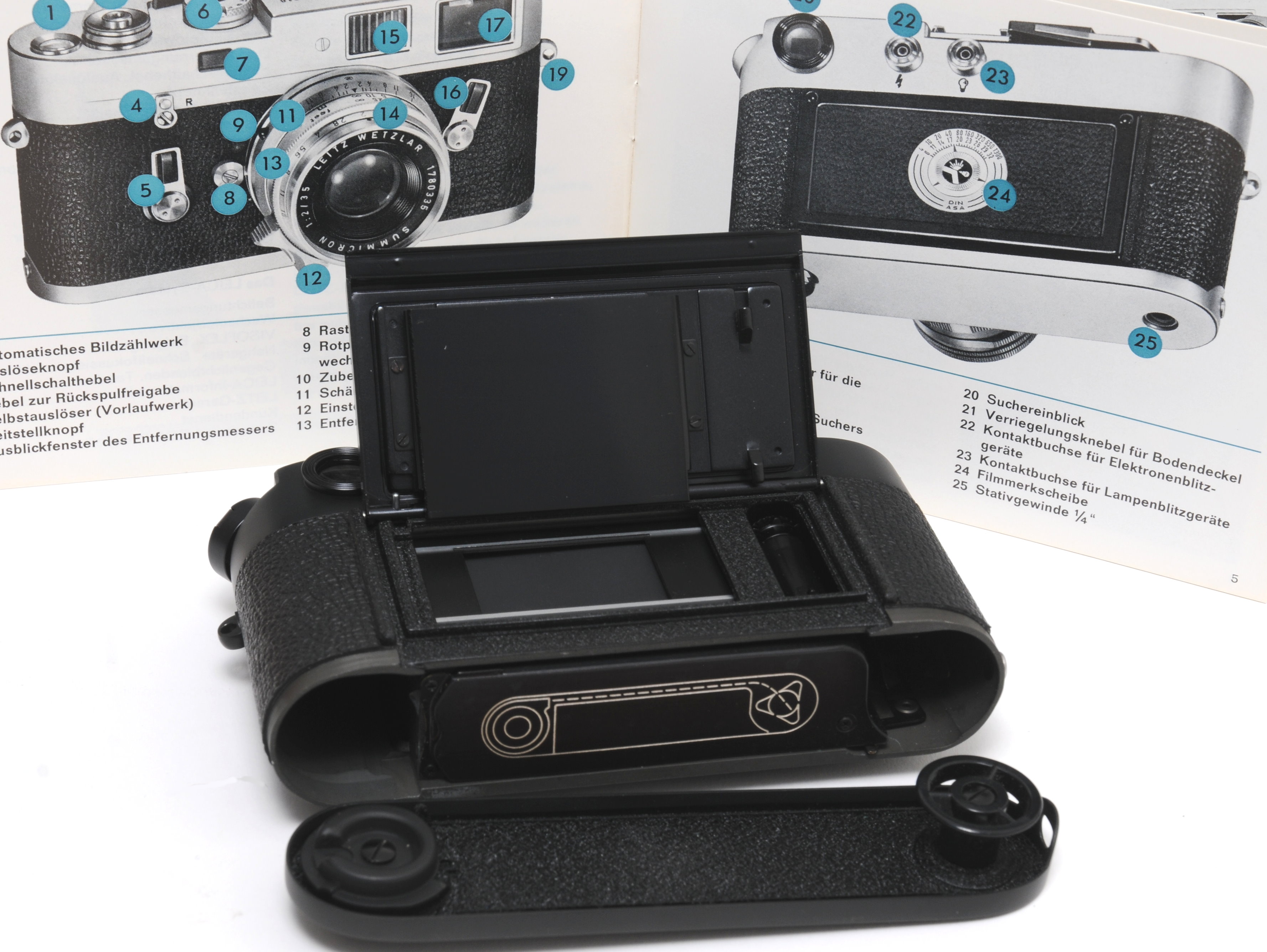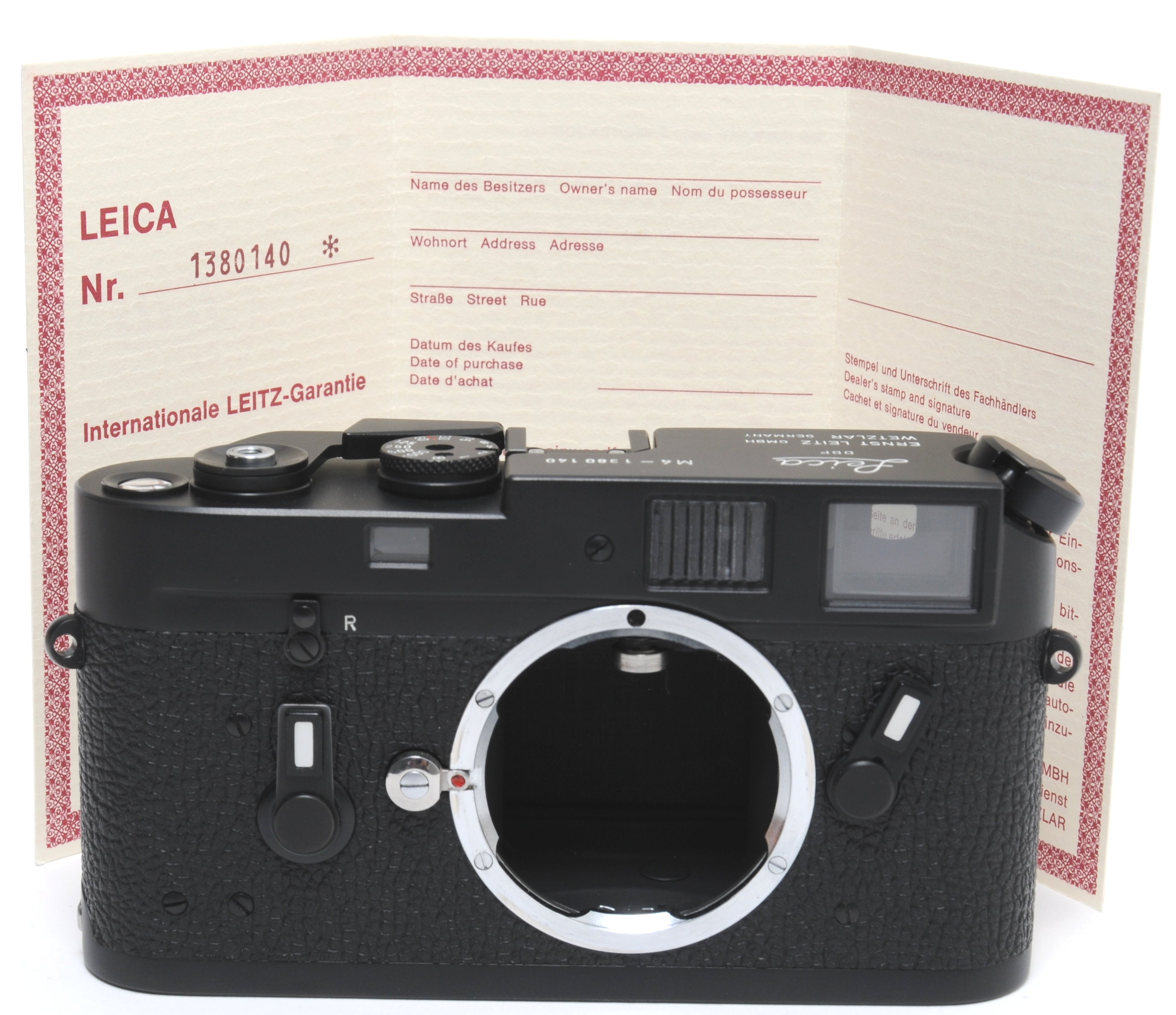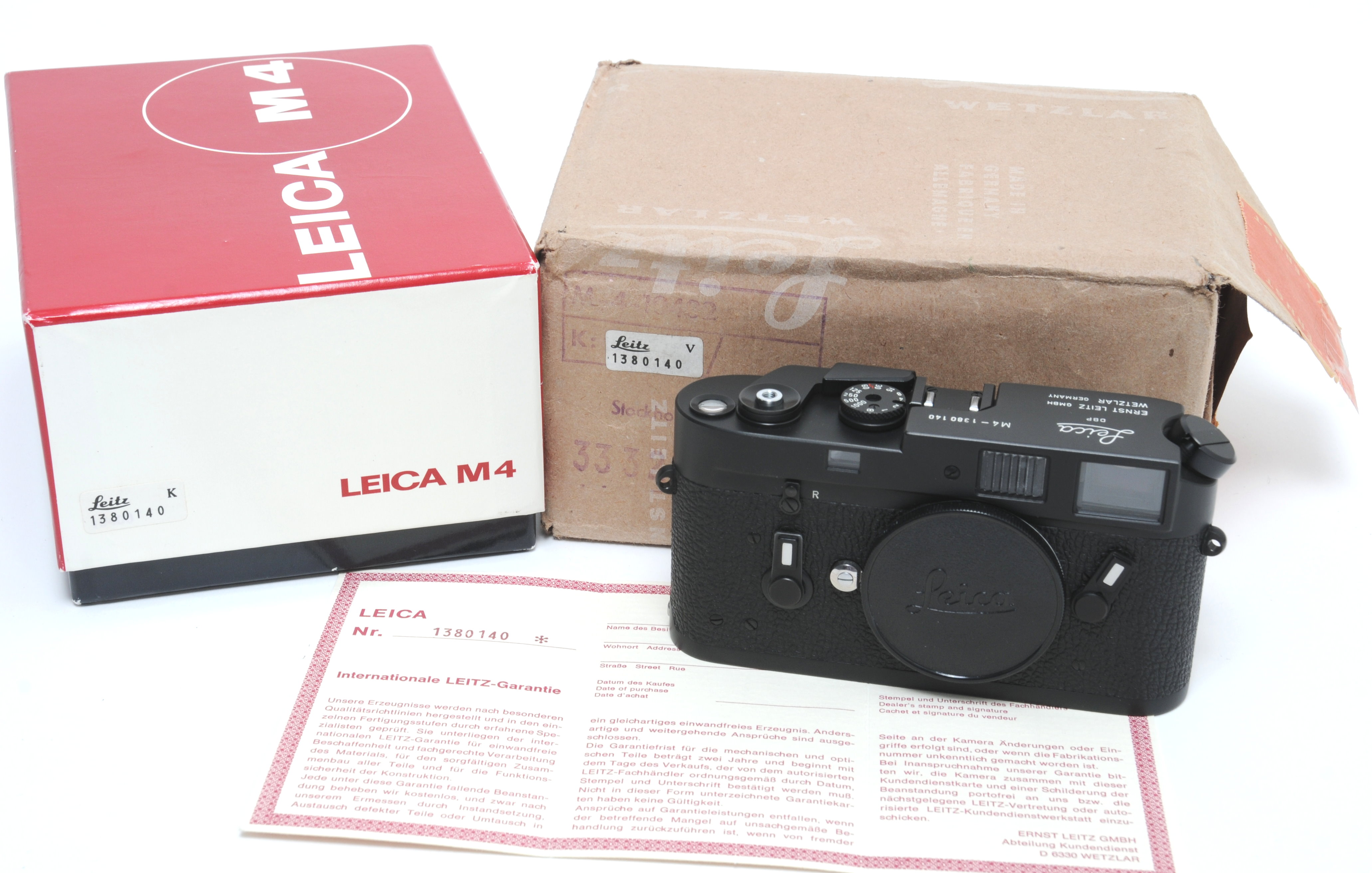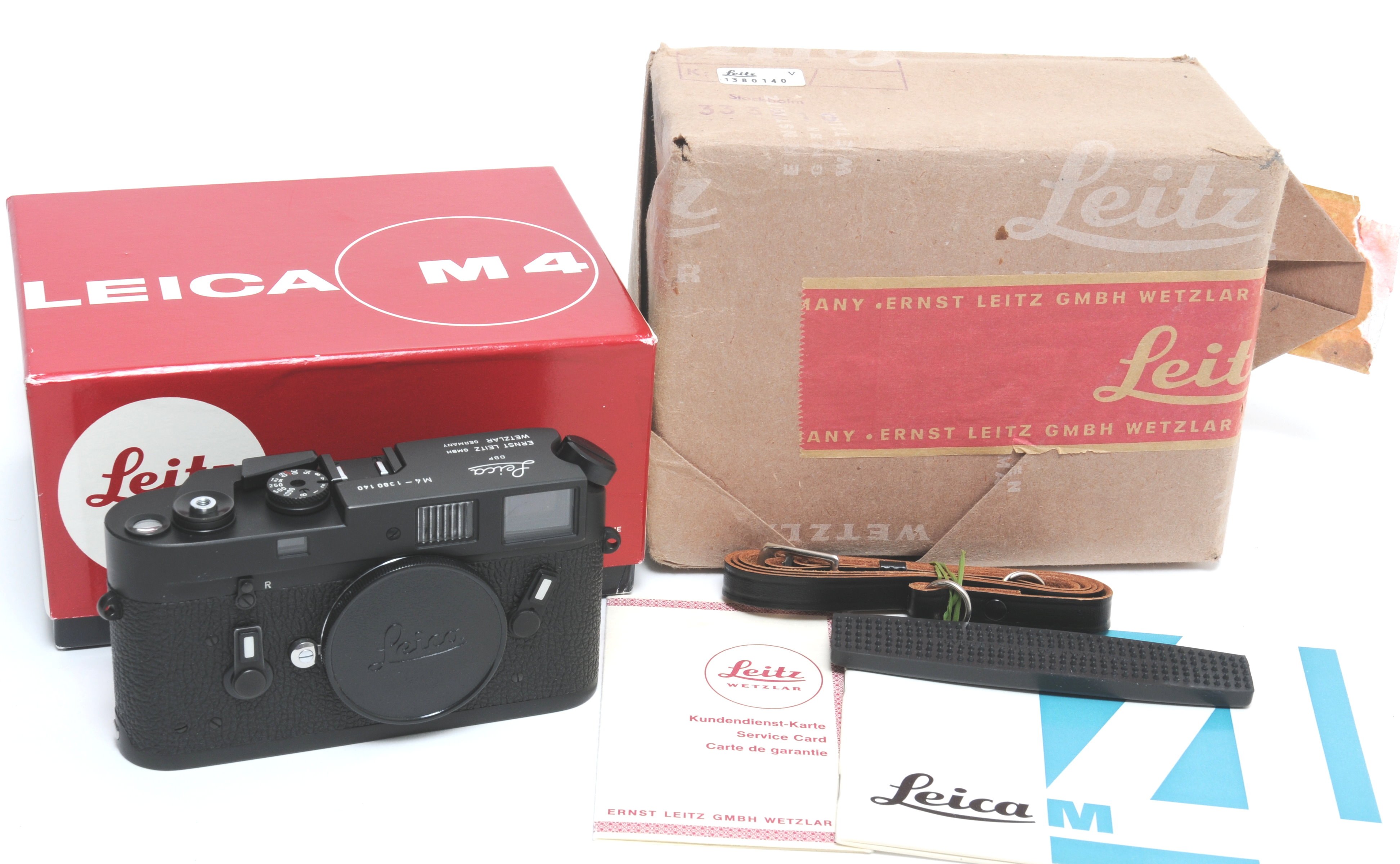 100% MINT like NEW condition! Rare Leica M4 black production Wetzlar in absolutely mint condition, with all papers, original maker's box and rare outer paper wrap