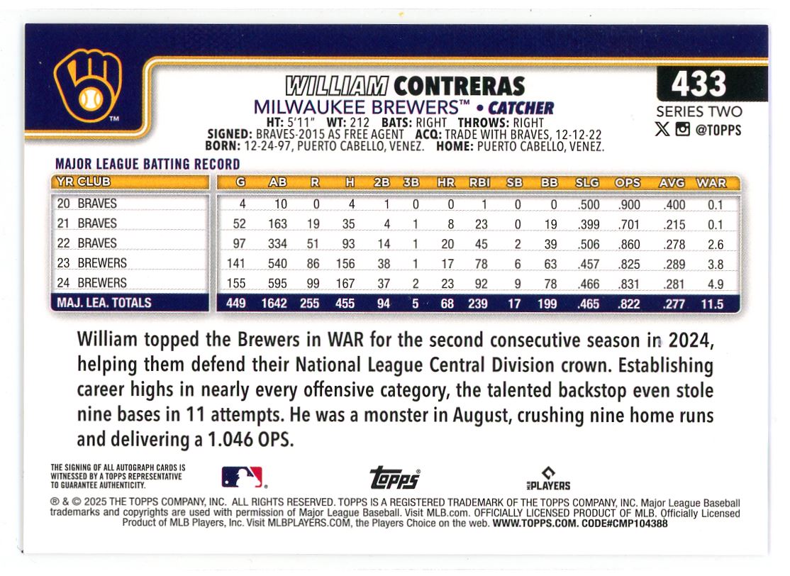 | 2025 Topps Update Real One William Contreras Auto Milwaukee Brewers #433 |