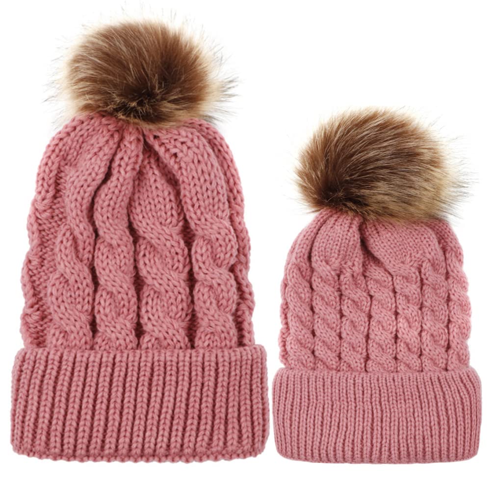 Wash Care All knitted hat will suggest hand washed and let it air dry just fine Mother's Hat: Height of Hat: 24cm/9.45'' (not include the fur ball) Cap Circumference: 38cm/14.96'' (can be stretched to 65cm) Baby's Hat: Height of Hat: 17cm/6.69'' (not include the fur ball) Cap Circumference: 30cm/11.81" (can be stretched to 50cm) Package Includes: 1 x Baby's Beanie Cap 1 x Mother's Hat
