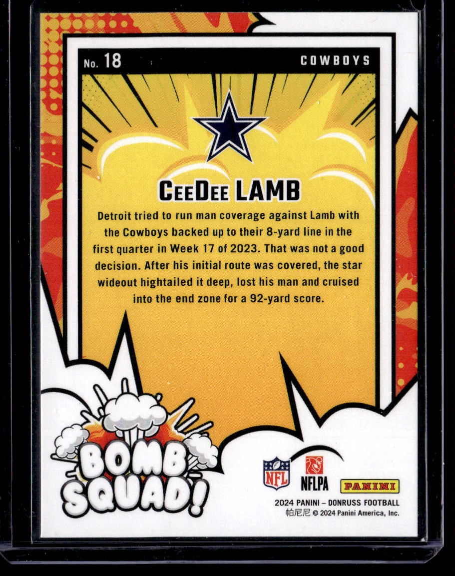 | CEEDEE LAMB 2024 DONRUSS BOMB SQUAD DALLAS COWBOYS #18 | ||||||||||||||||