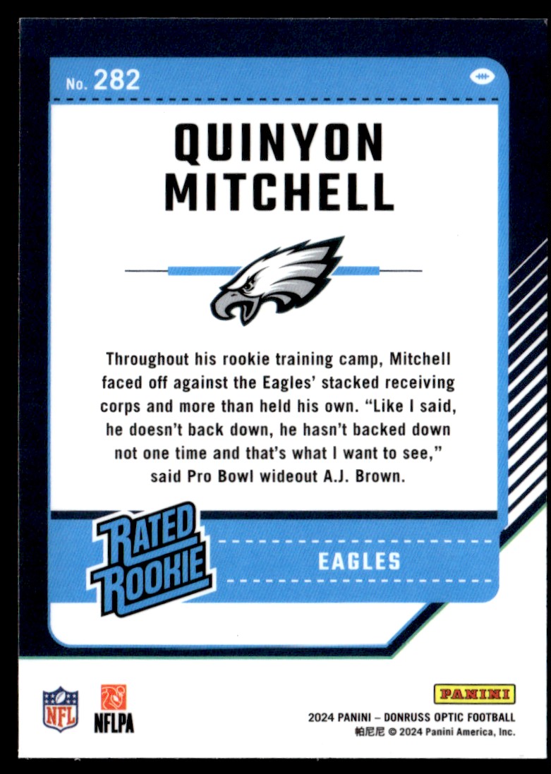 | QUINYON MITCHELL 2024 DONRUSS OPTIC RATED ROOKIE RC PHILADELPHIA EAGLES #282 | ||||||||||||||||||