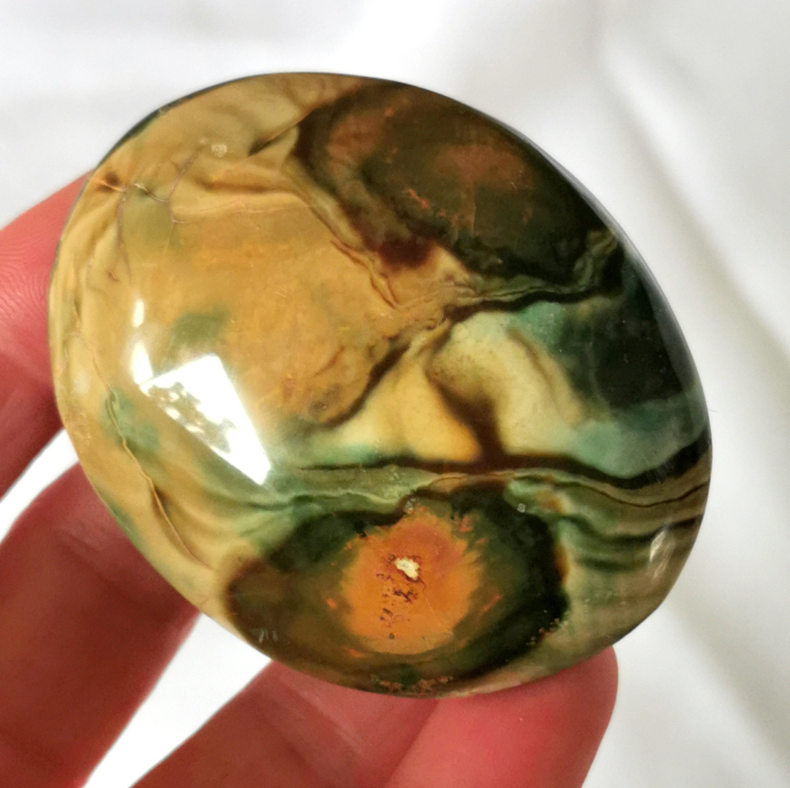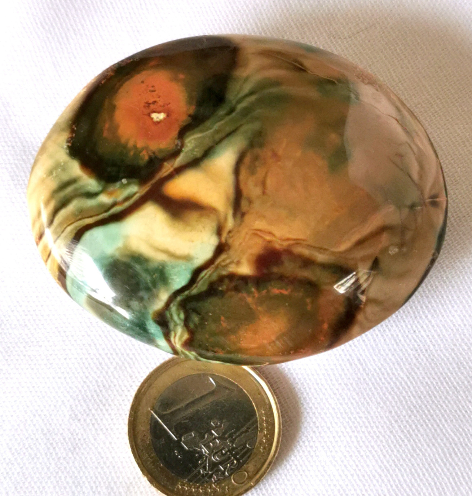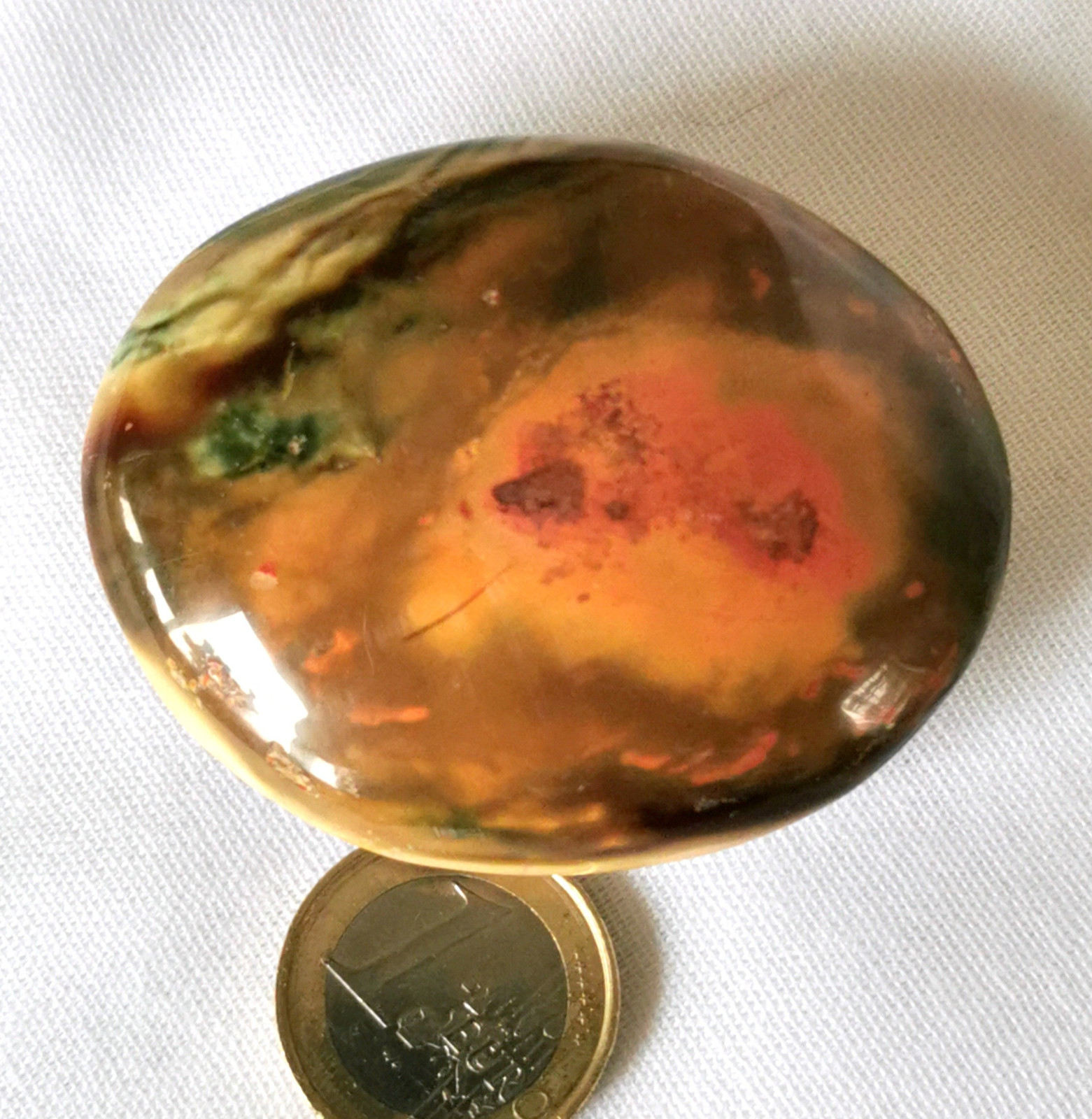 wunderbarer Polychrom Jaspis Handschmeichler aus Madagaskar, Abmessungen ca. 61 * 49 * 24 mm, Gewicht ca. 90 Gramm.