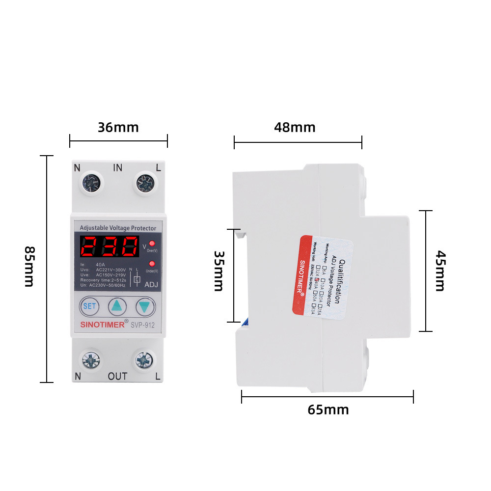 220V Din Rail Adjustable Over & Under Voltage Protective Device Delay Auto reset