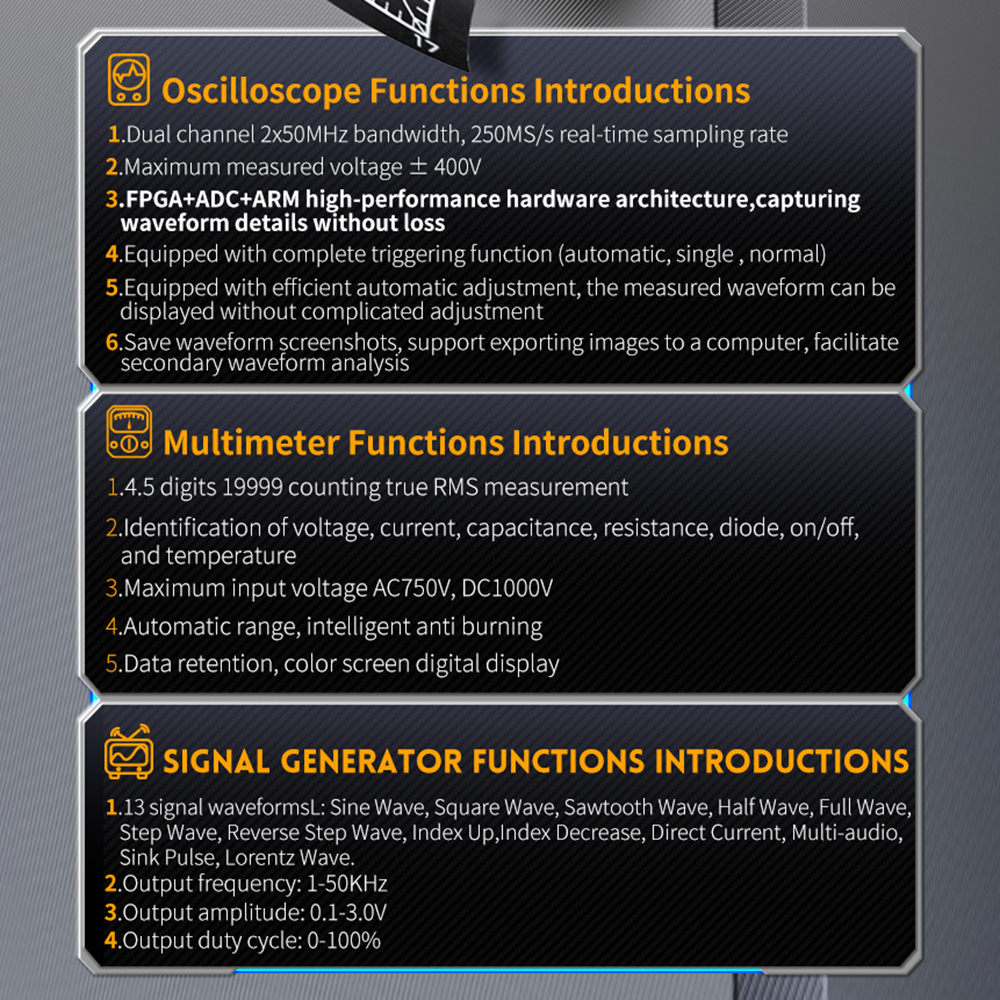 FNIRSI DSO-TC4/2C53T Digital Oscilloscope Multimeter Signal Generator Transistor