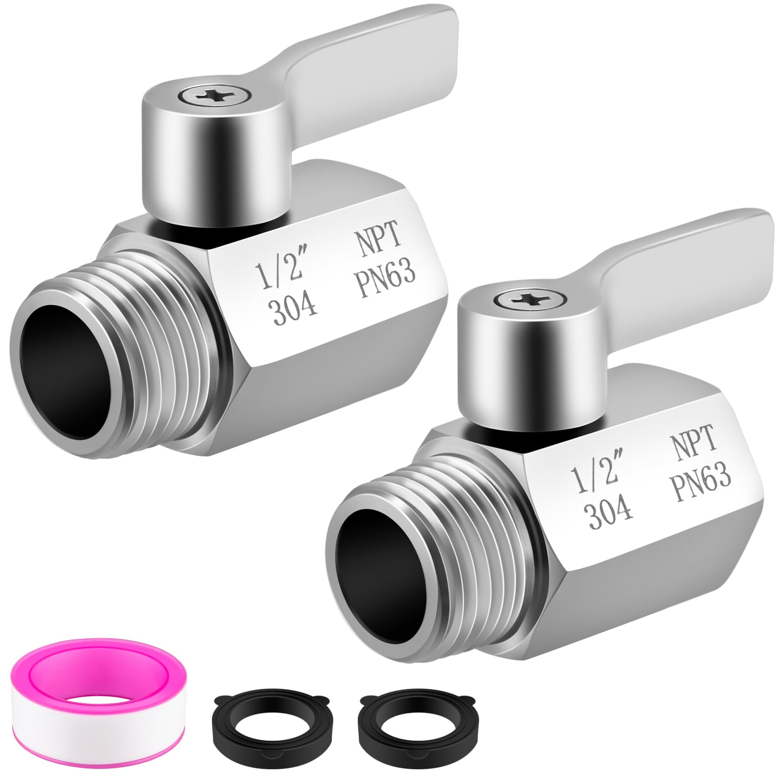 Standard interface: 1/2 inch standard interface, NPT internal and external threads, compatible with the most common shower head connectors in North America,can be used as a shower head stop valve, RV shower stop valve or water-saving regulating valve.