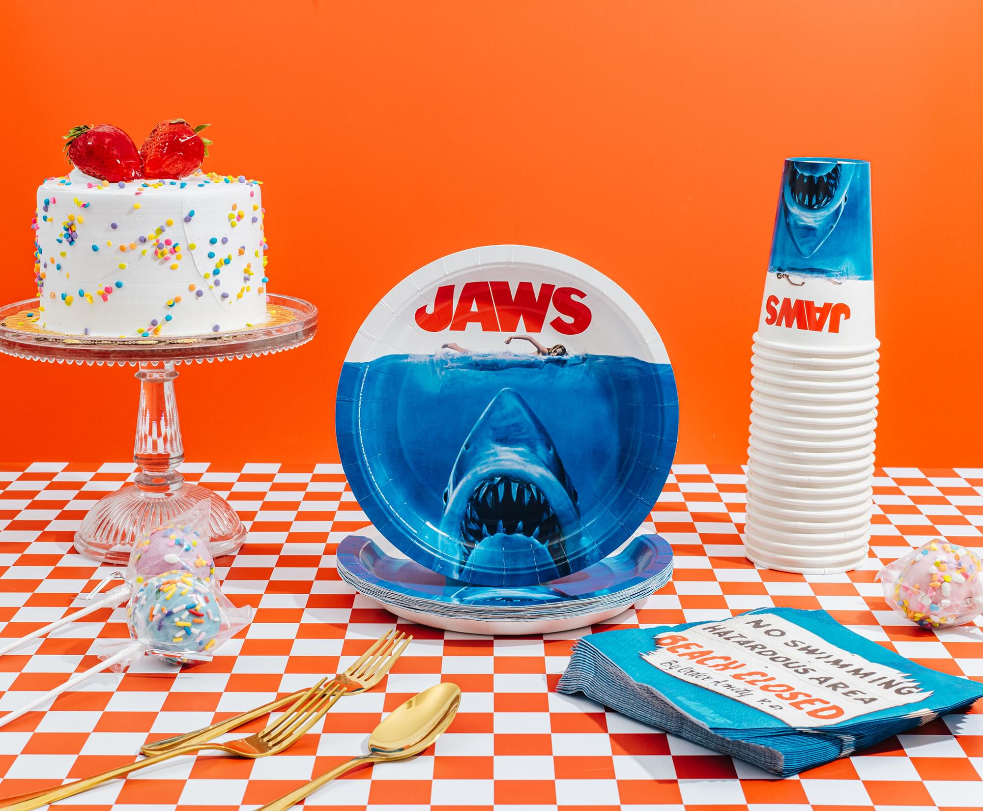Sink your teeth into party prep with this officially licensed tableware set inspired by Stephen Spielberg's Jaws.