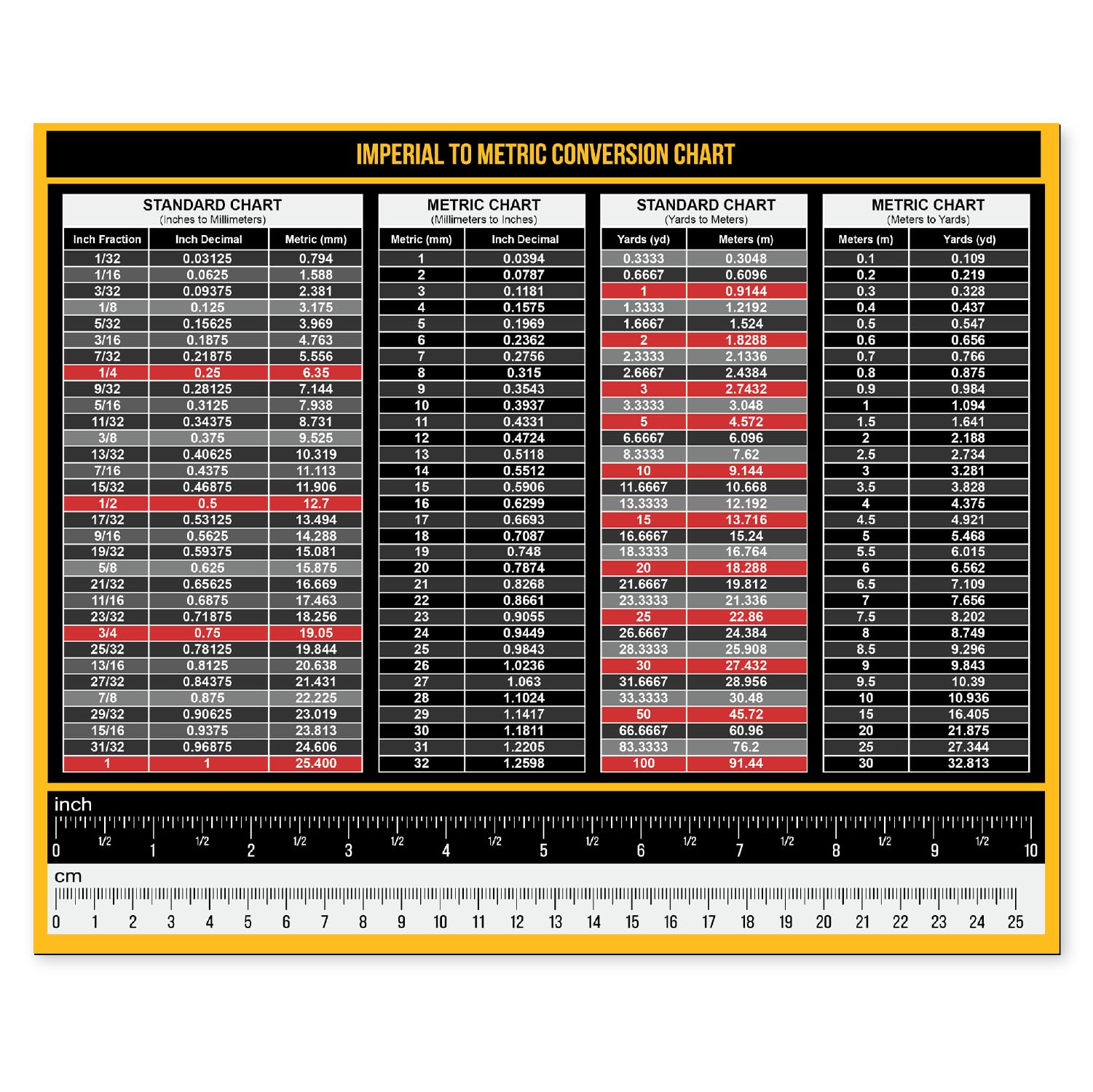 - STRONG MAGNET: An essential tool for DIY enthusiasts, crafters, or anyone who frequently toggles between metric and imperial measurements. Stick this handy chart on your toolbox, workbench, or fridge! The large, clear format makes conversions hassle-free!