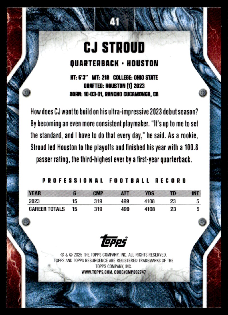 | CJ STROUD 2025 TOPPS RESURGANCE HOUSTON TEXANS #41 | ||||||||||||||||