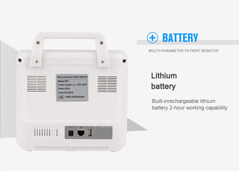 Optional parameter & configuration (not included): 2-IBP, 12 lead ECG, ETCO2, Printer