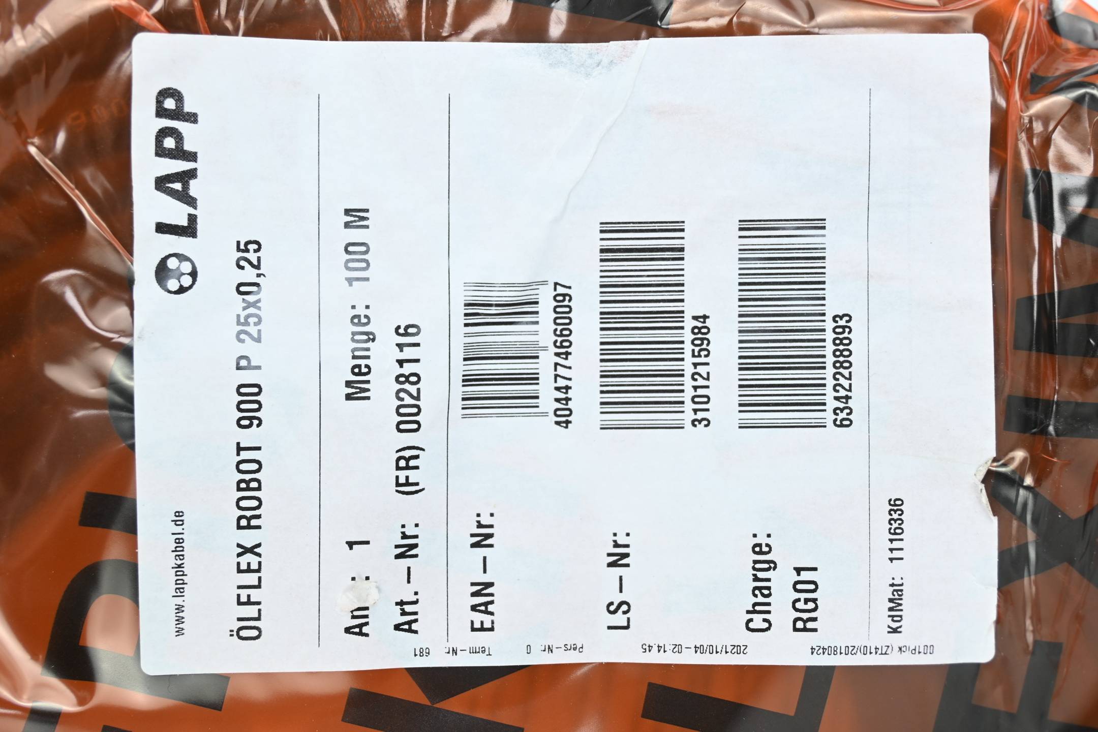 Lapp Kabel Roboterleitung ÖLFLEX ROBOT 900 P 25x0,25 ( 0028116 ) 100,0m