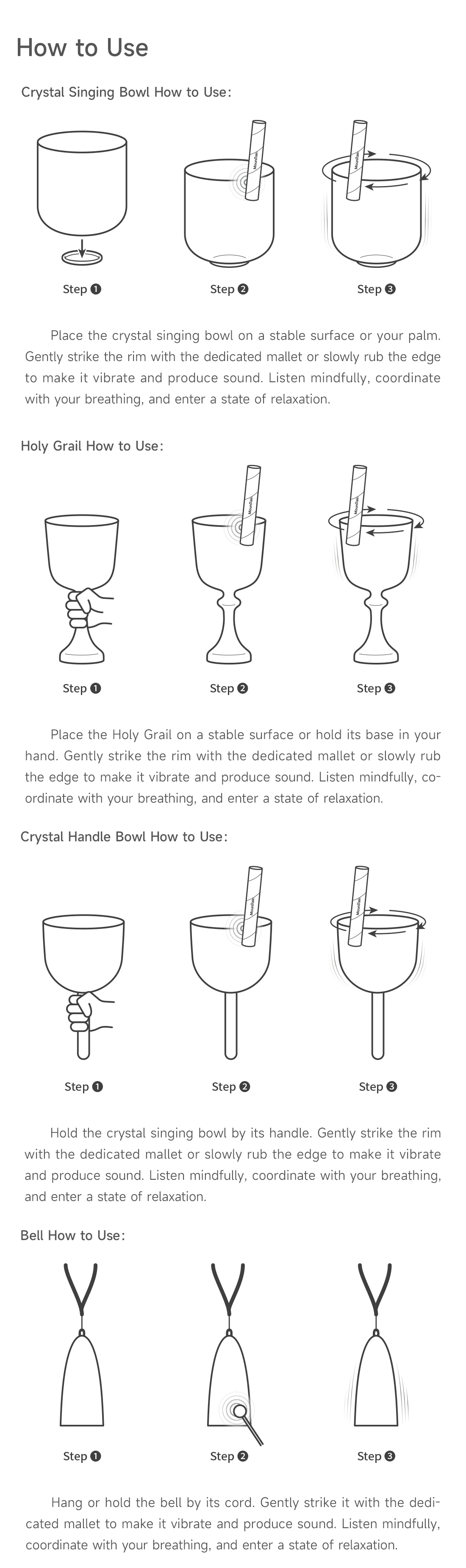 Our main products include crystal singing bowls ,handheld bowls, chalices,pyramids, merkabas,harps, tuning forks,steel tongue drums, UU drums,handpan drums and chakra chimes that are suitable for yoga,sound healing ,meditation and relaxation.