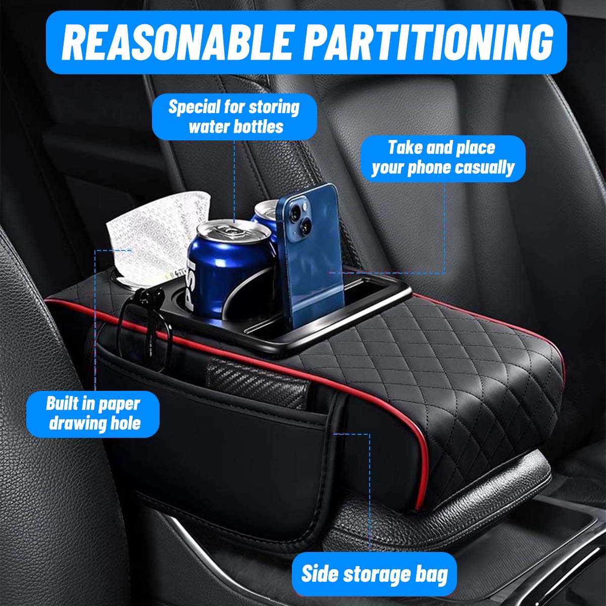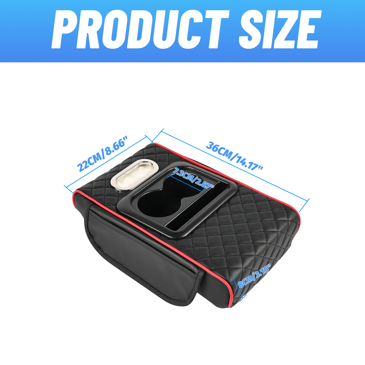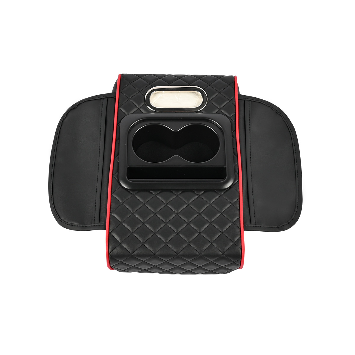 Specification: Brand new Color: Black+Red Line Features: This Center Console Cover with Cup Holder provides a perfect solution for your car's organization while giving your arms and wrists a rest during long drives. 1pc Armrest Heightening Cushion