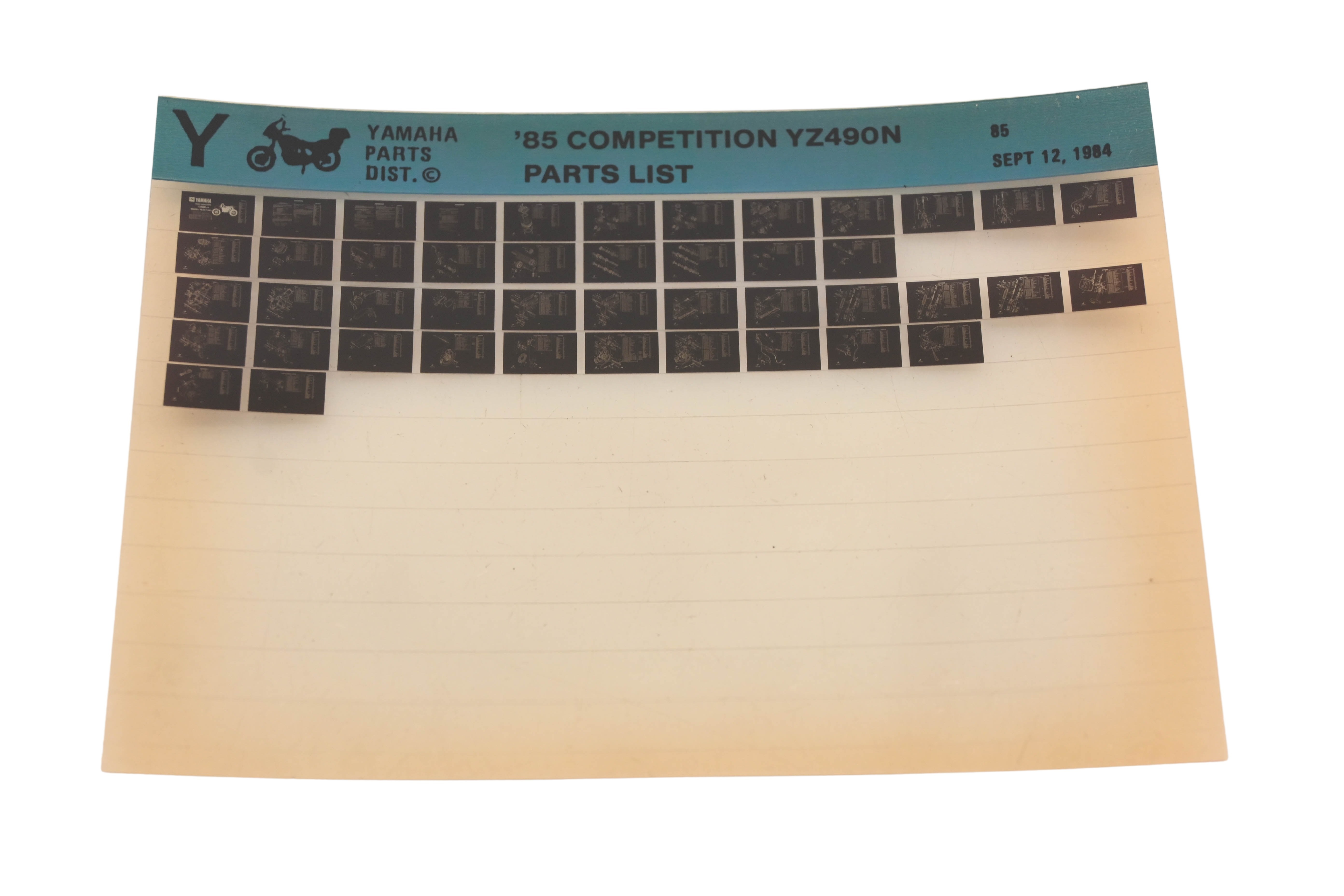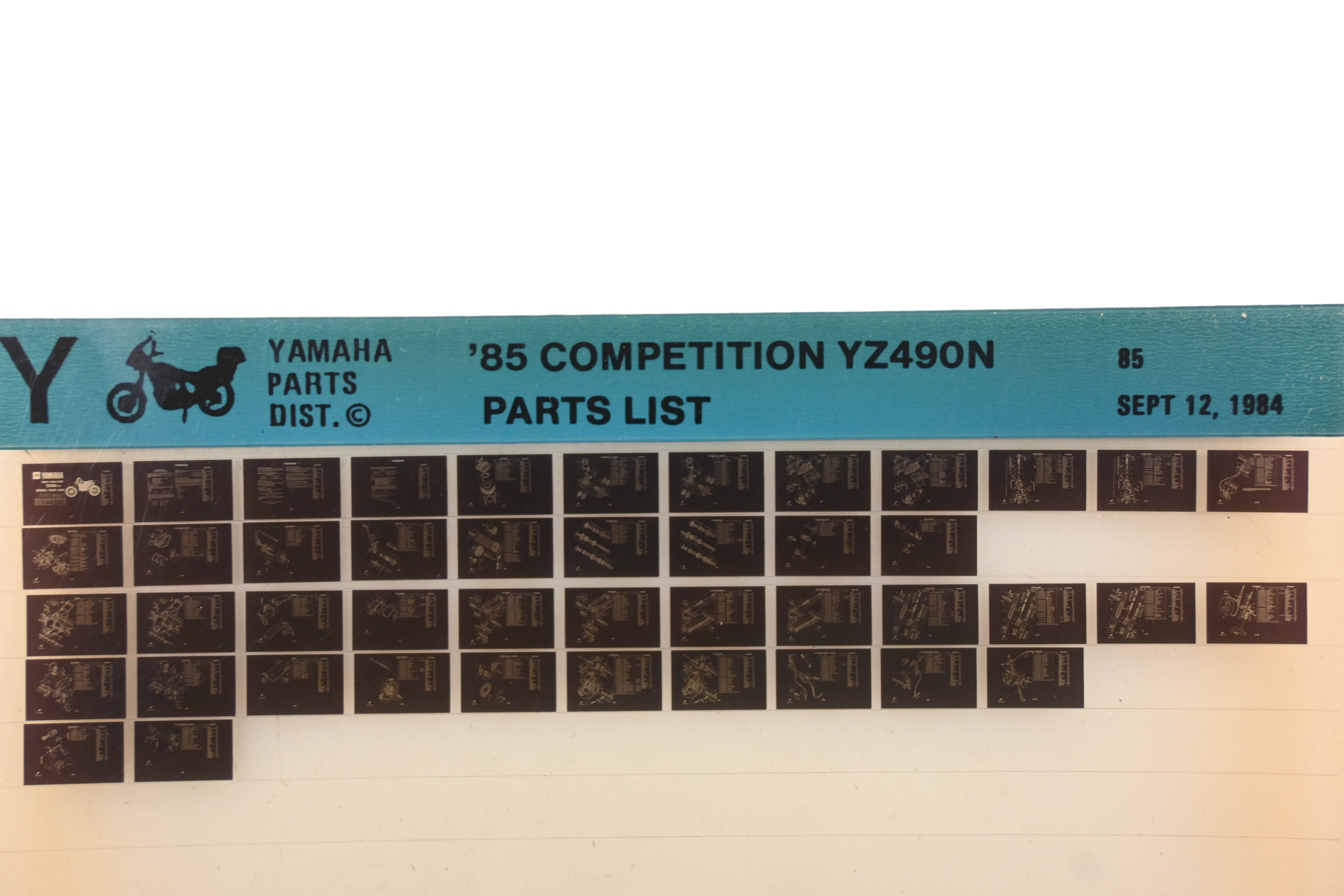 1985 Competition YZ490N Parts List Microfiche Rev:9/12/1984 is used and in good condition, not in original packaging. Shows signs of shelf wear.