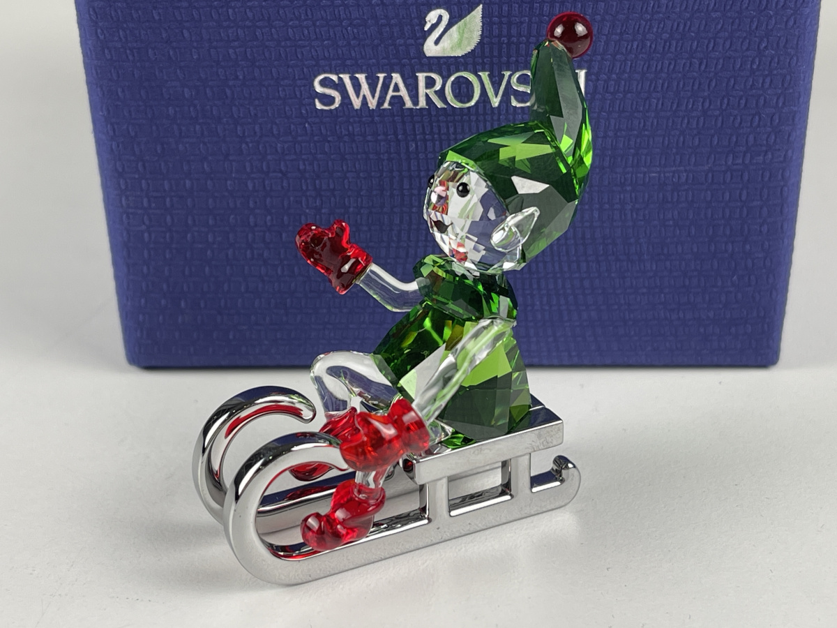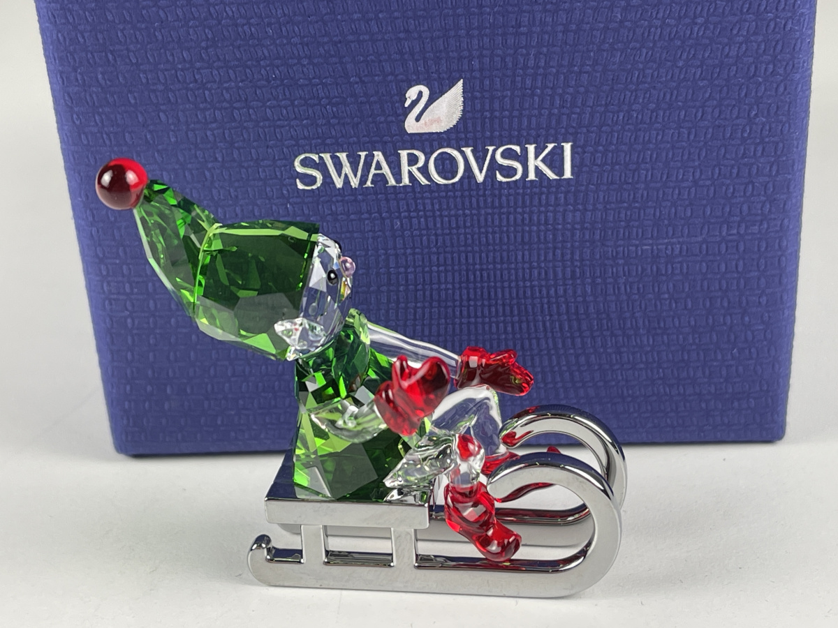 Statua Swarovski 5533947 Babbo Natale elfo su slitta 5,7 cm. - Scatola e certificato - Ottime condizioni.