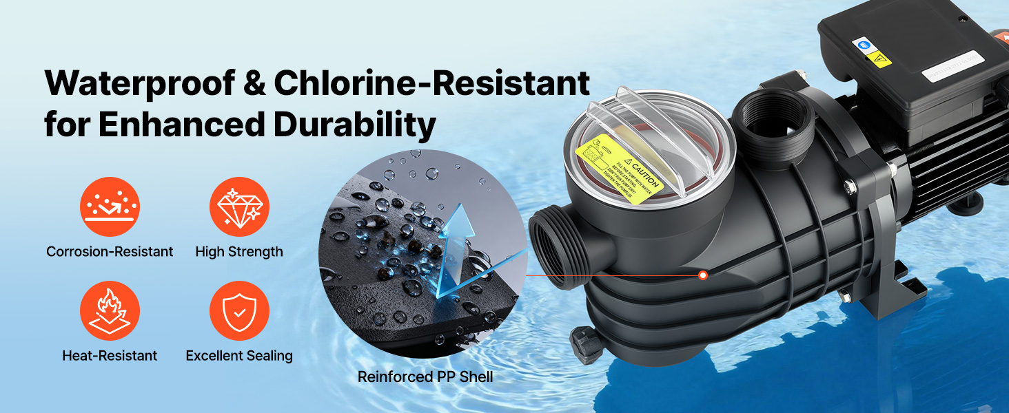 Die Poolfilterpumpe besteht aus strapazierfähigem, korrosionsbeständigem Material, das Langlebigkeit, Leichtigkeit und Stabilität kombiniert, um selbst anspruchsvollen Poolbedingungen standzuhalten.