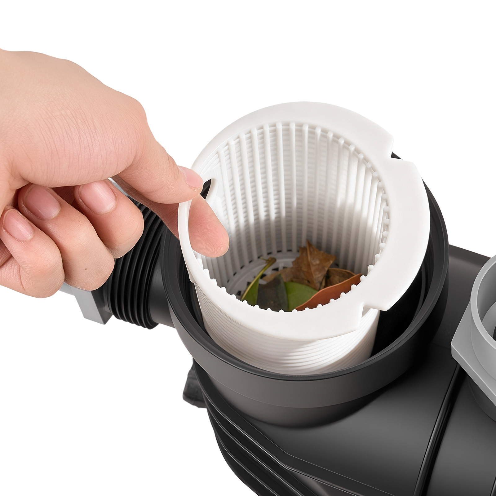 - Mit Filterkorb und Abdeckung: Die Poolpumpe verfügt über einen geräumigen Filterkorb, der Schmutz effektiv auffängt und längere Reinigungsintervalle ermöglicht. Dank des durchsichtigen Deckels kann der Zustand des Filters schnell überprüft werden, was die Wartung vereinfacht.