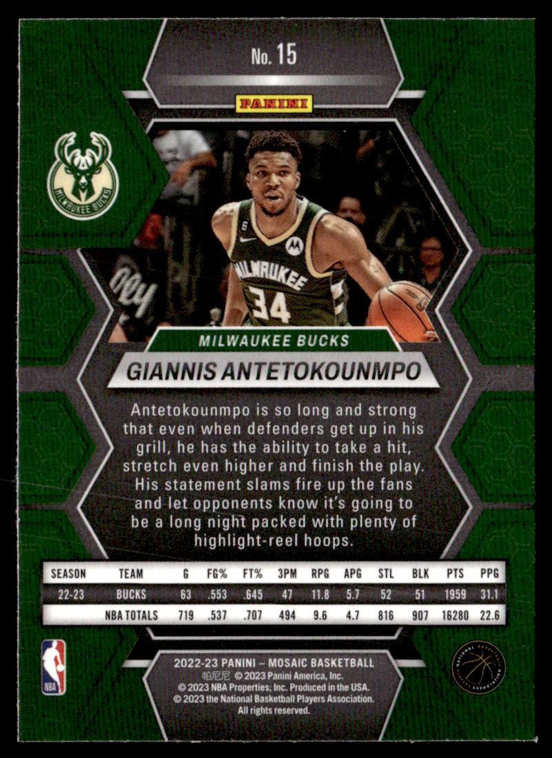 | GIANNIS ANTETOKOUNMPO 2023-24 PANINI MOSAIC MILWAUKEE BUCKS #15 | ||||||||||||||||
