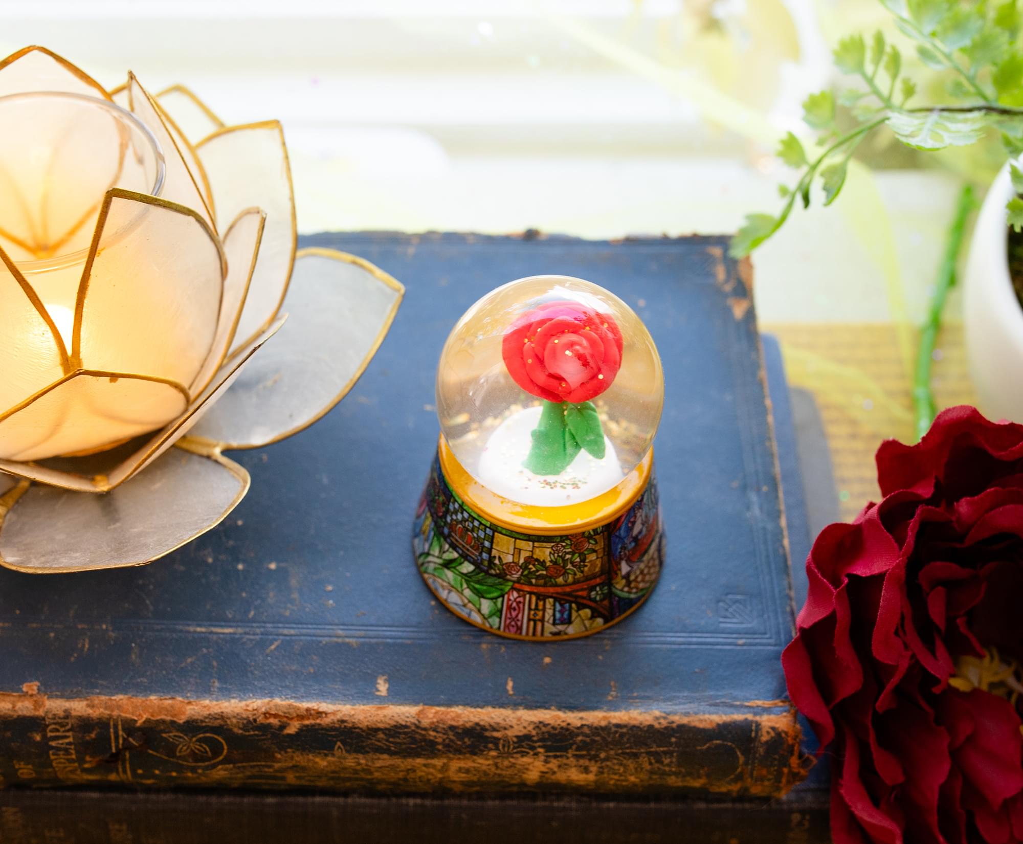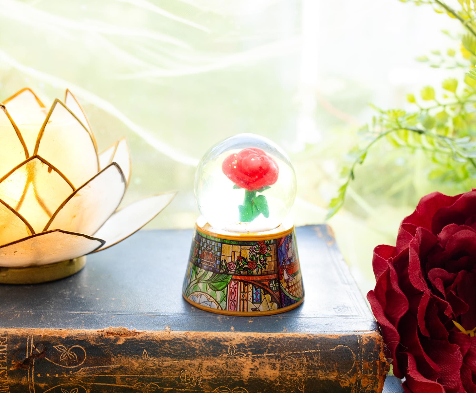 With some flowers, it's not the thorns you have to worry about. Give the mini globe a shake to see glittering gold sparkles floating all around the Enchanted Rose from the West Wing.